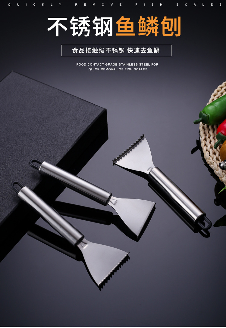 LA714可发样/不锈钢鱼鳞刨刀刮鳞器带挂钩厨房小工具手动打鳞刮鱼杀鱼器批发