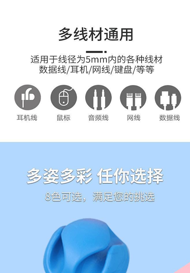 LA714可发样/桌面数据线充电线收纳手机耳机线办公室床头墙面线卡固线器理线器