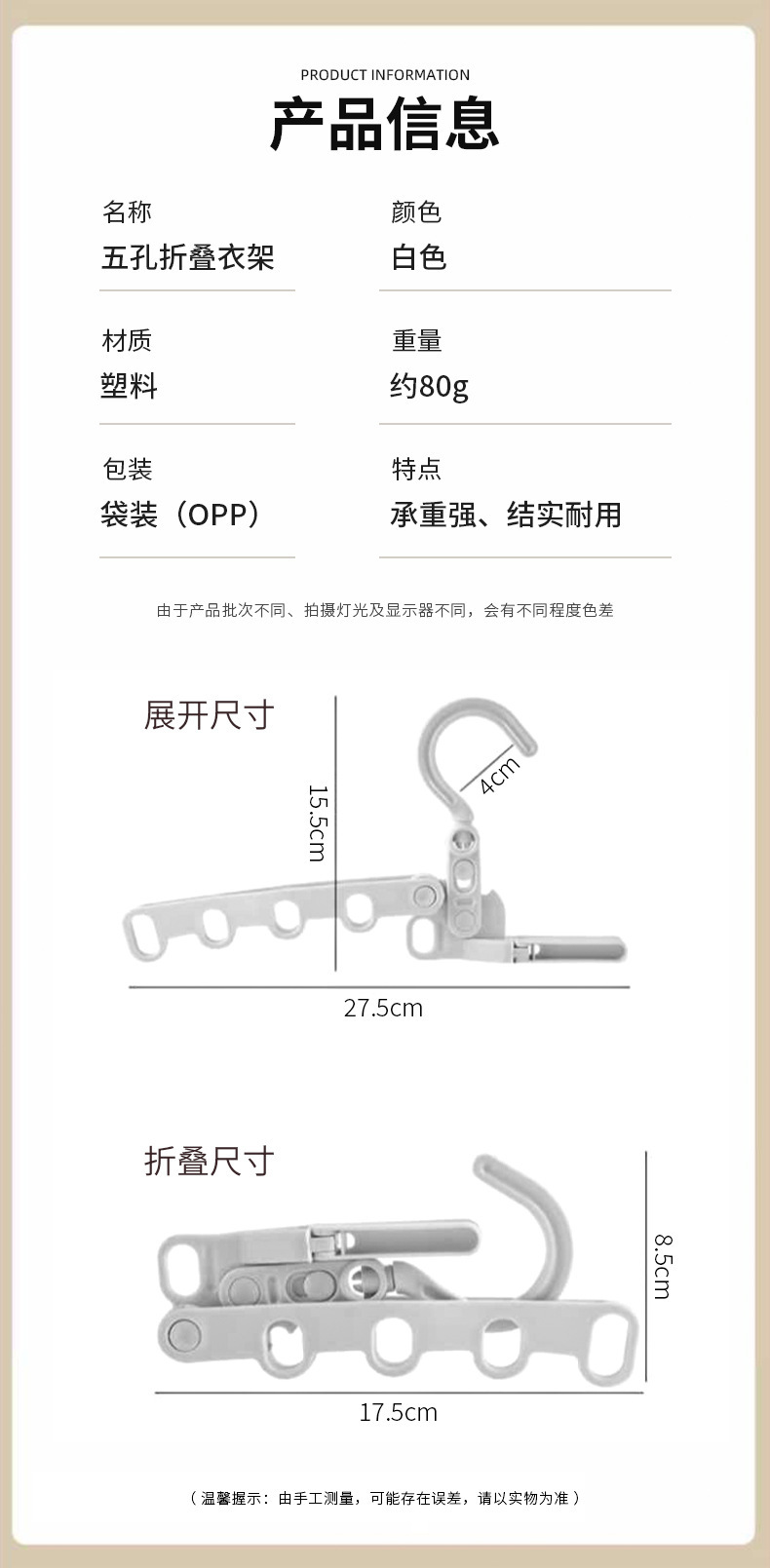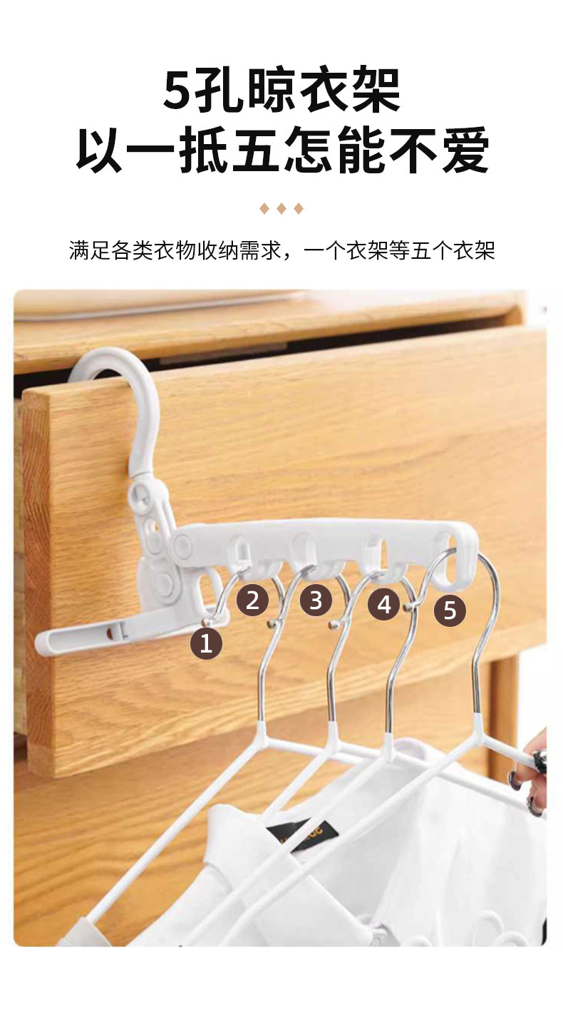 LA714可发样/旅行五孔折叠衣架便携式可调节魔术衣柜衣架承重强加厚阳台晾衣架