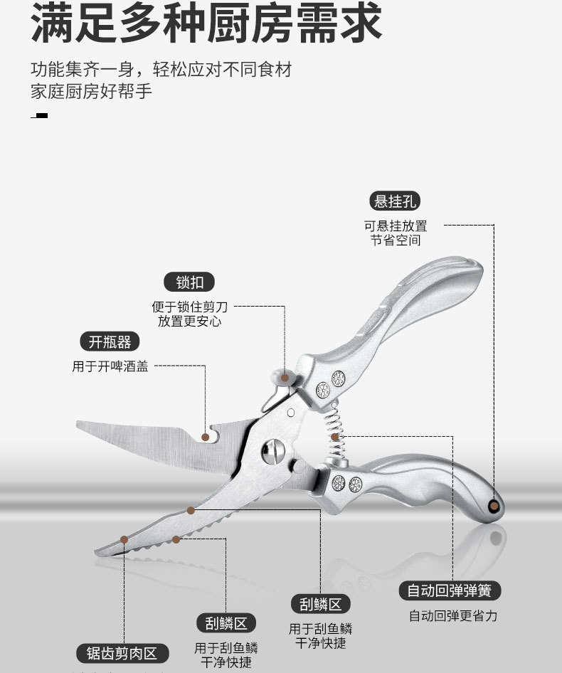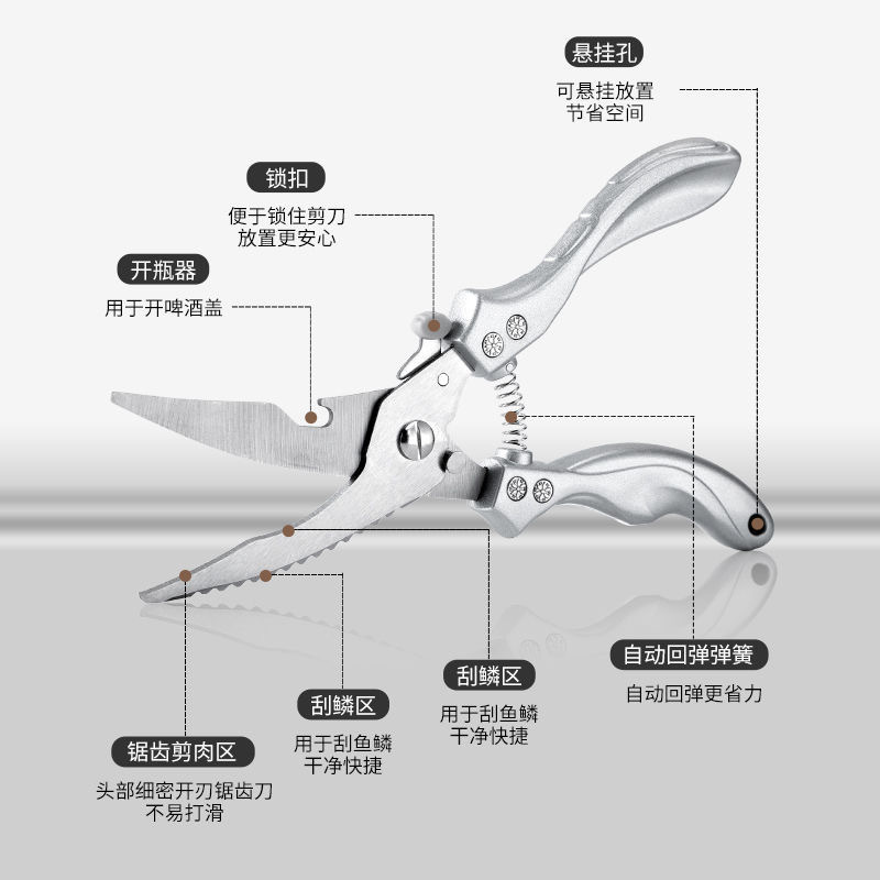 LA714可发样/不锈钢多功能专用鸡骨剪锋利强力剪鹅鸭食物厨房剪多用厨房剪刀