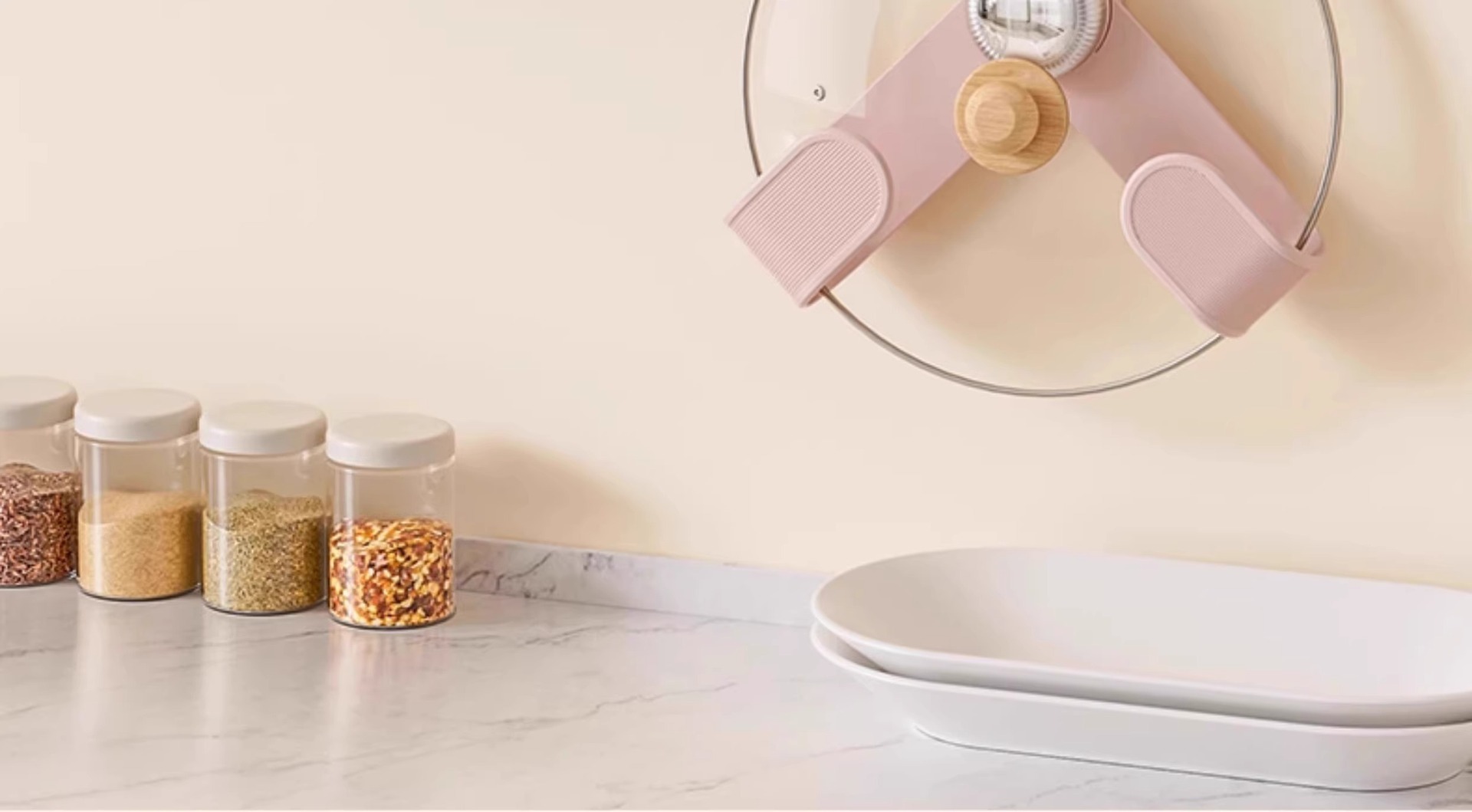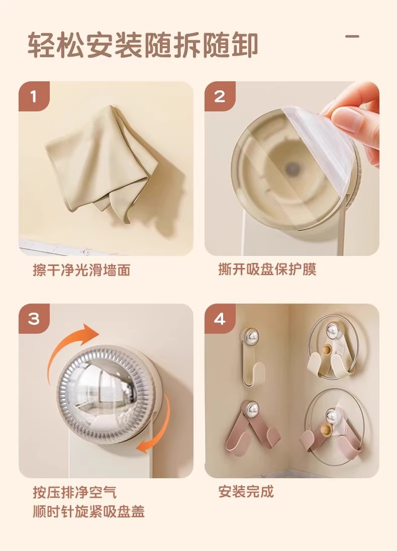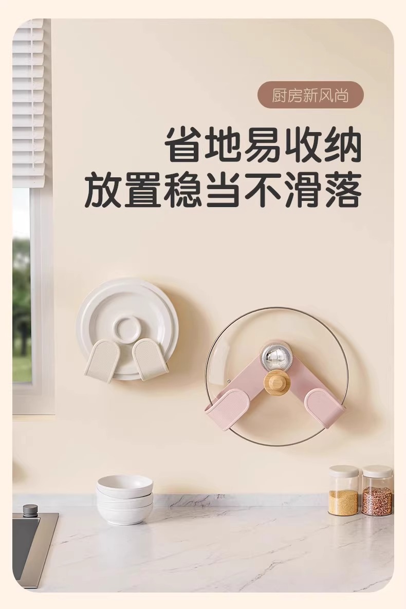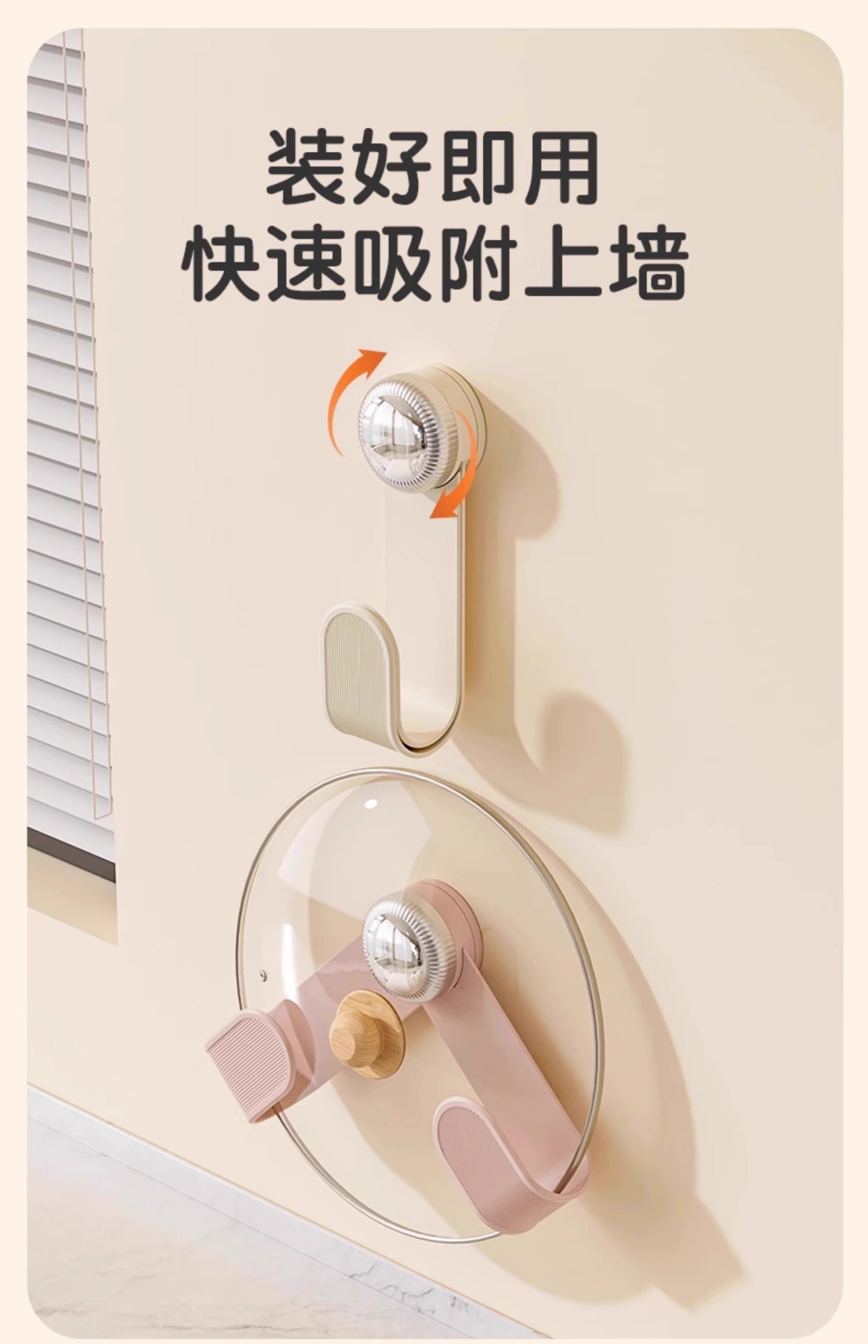 LA714可发样/奶油吸盘旋转锅盖架壁挂式菜板架砧板架免打孔厨房收纳挂架置物架
