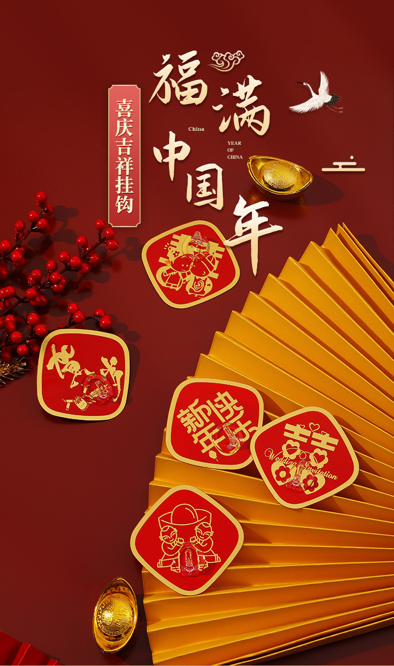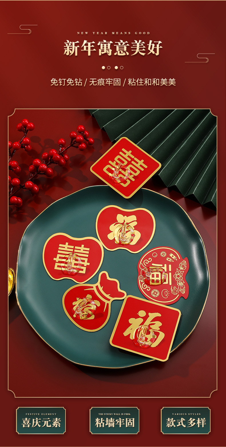 LA714可发样/过年喜庆挂钩亚克力免打孔强力粘钩喜字福字无痕贴婚庆收纳钩批发