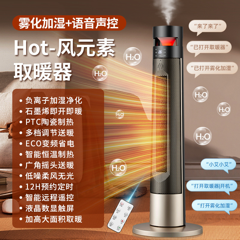 • AI语音遥控款+三挡调温+带摇头+雾化加湿+仿真火焰