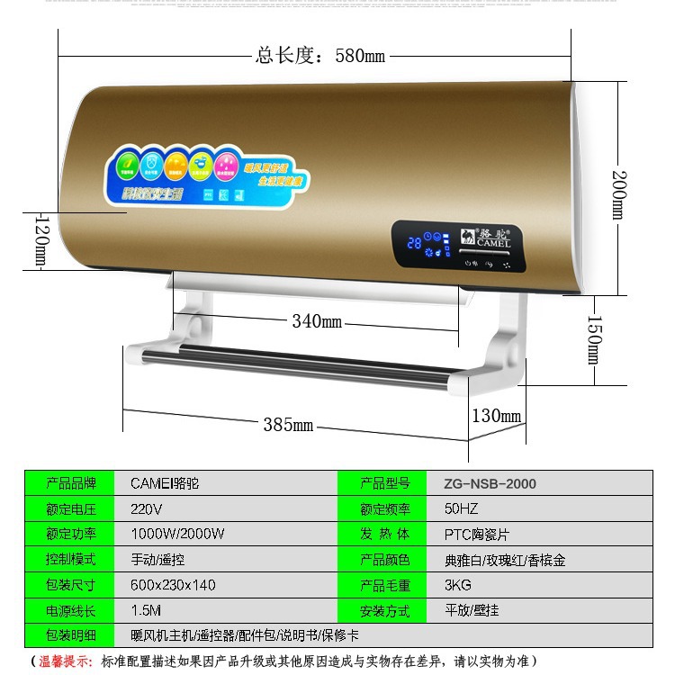 LA713可发样/骆驼取暖器家用暖风机挂壁遥控电暖气壁挂浴室小空调扇省电高效