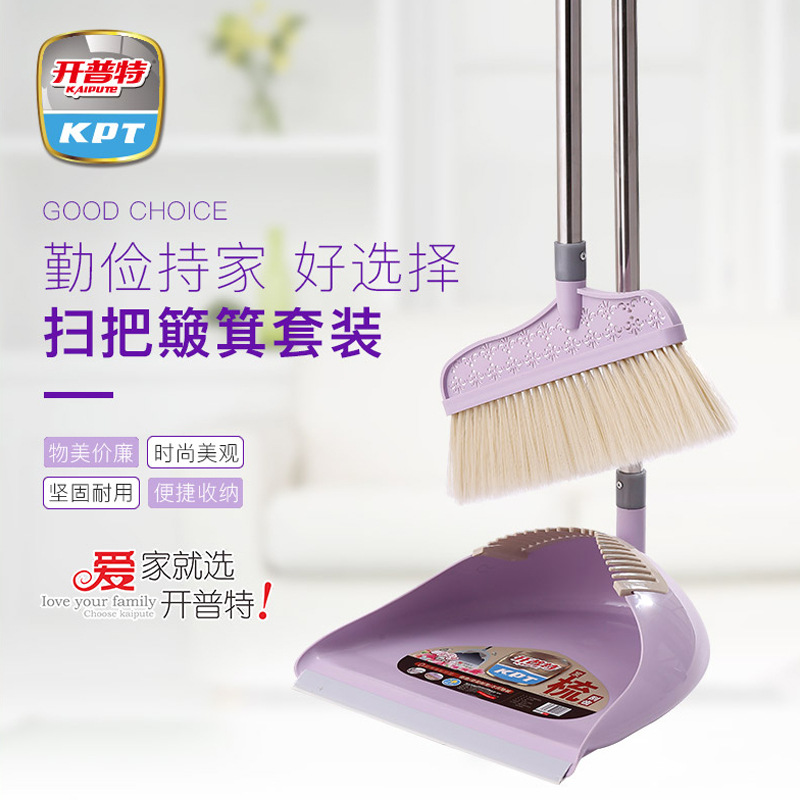 开普特 9024扫把簸箕套装 锦花飞碟清洁工具组合装 加厚不锈钢杆