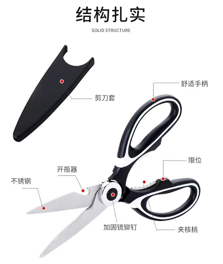 LA720/可发样一件代发多功剪刀熊猫剪强力鸡骨剪厨房剪家用食物剪刀鱼骨剪现货