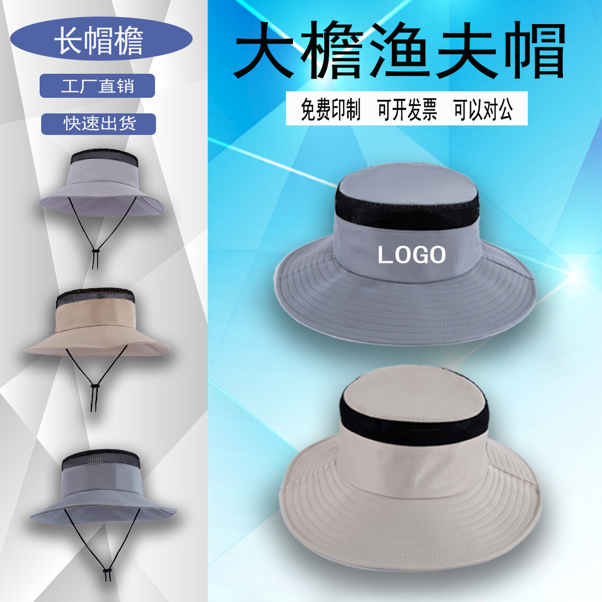 LA715可发样/跨境夏天防晒遮阳渔夫户外渔夫帽大帽檐网面透气帽子定制LOGO印字