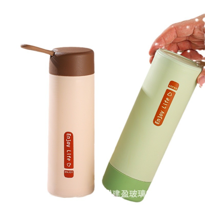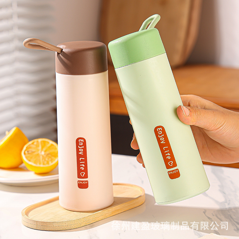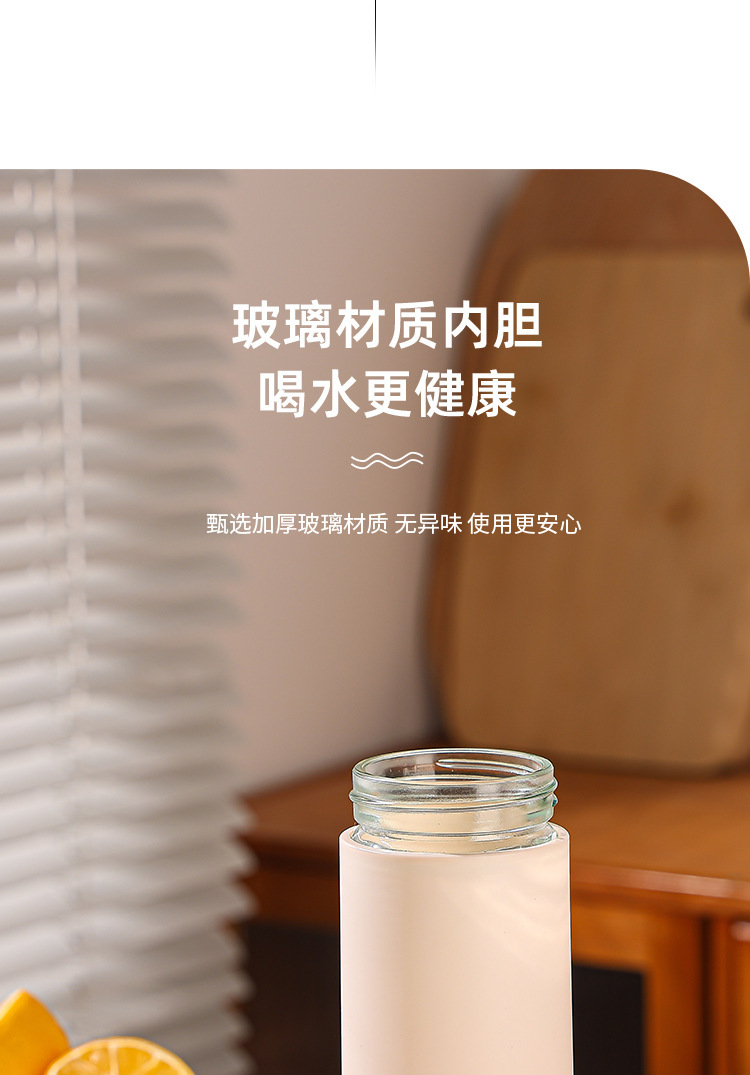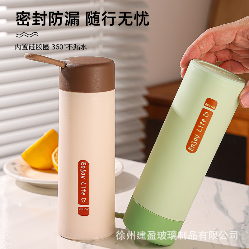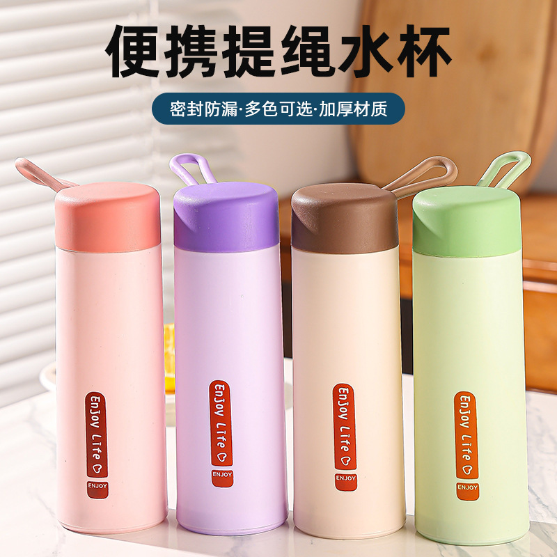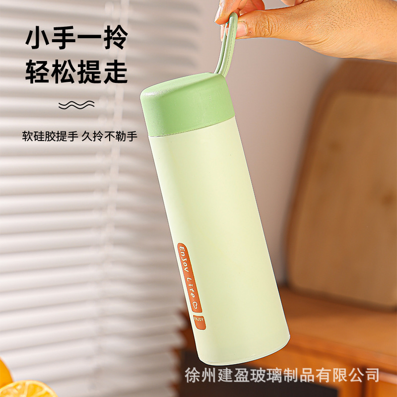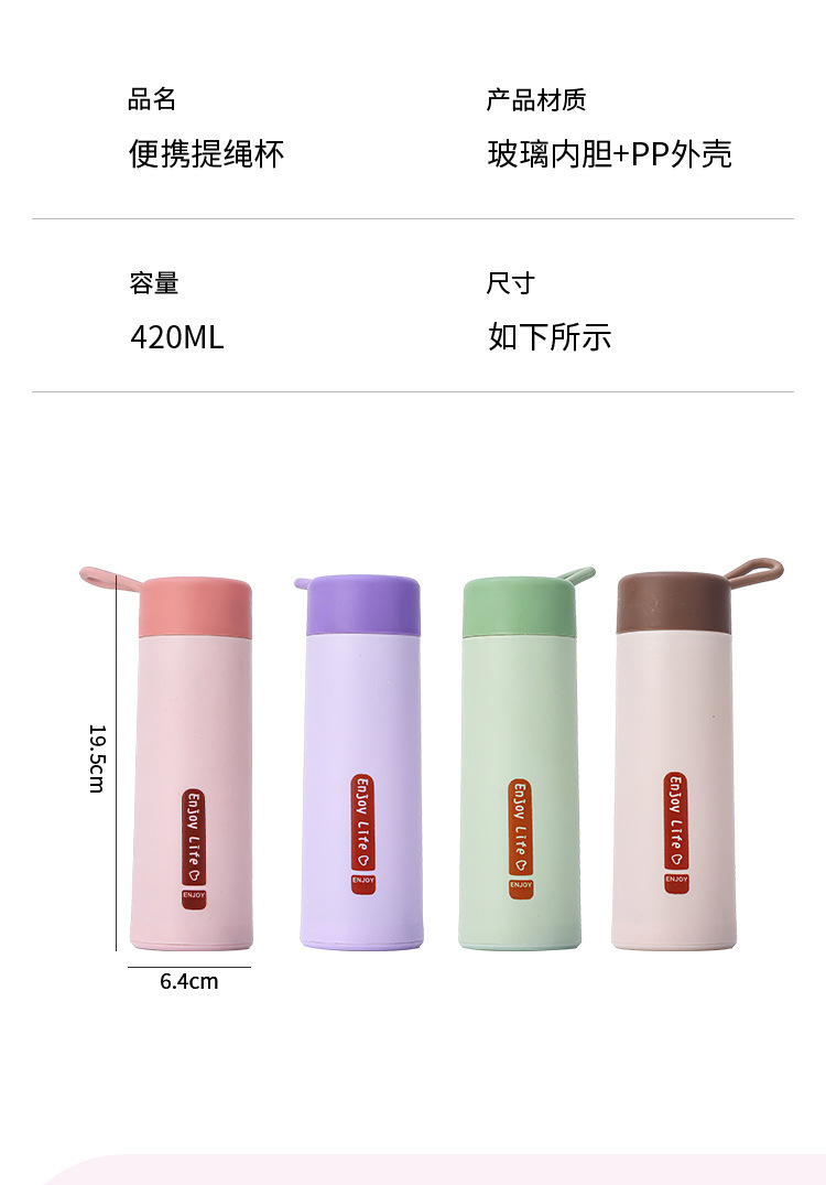 LA007便携提绳玻璃杯420ml家用办公室水杯双层塑玻杯礼品杯子便携式