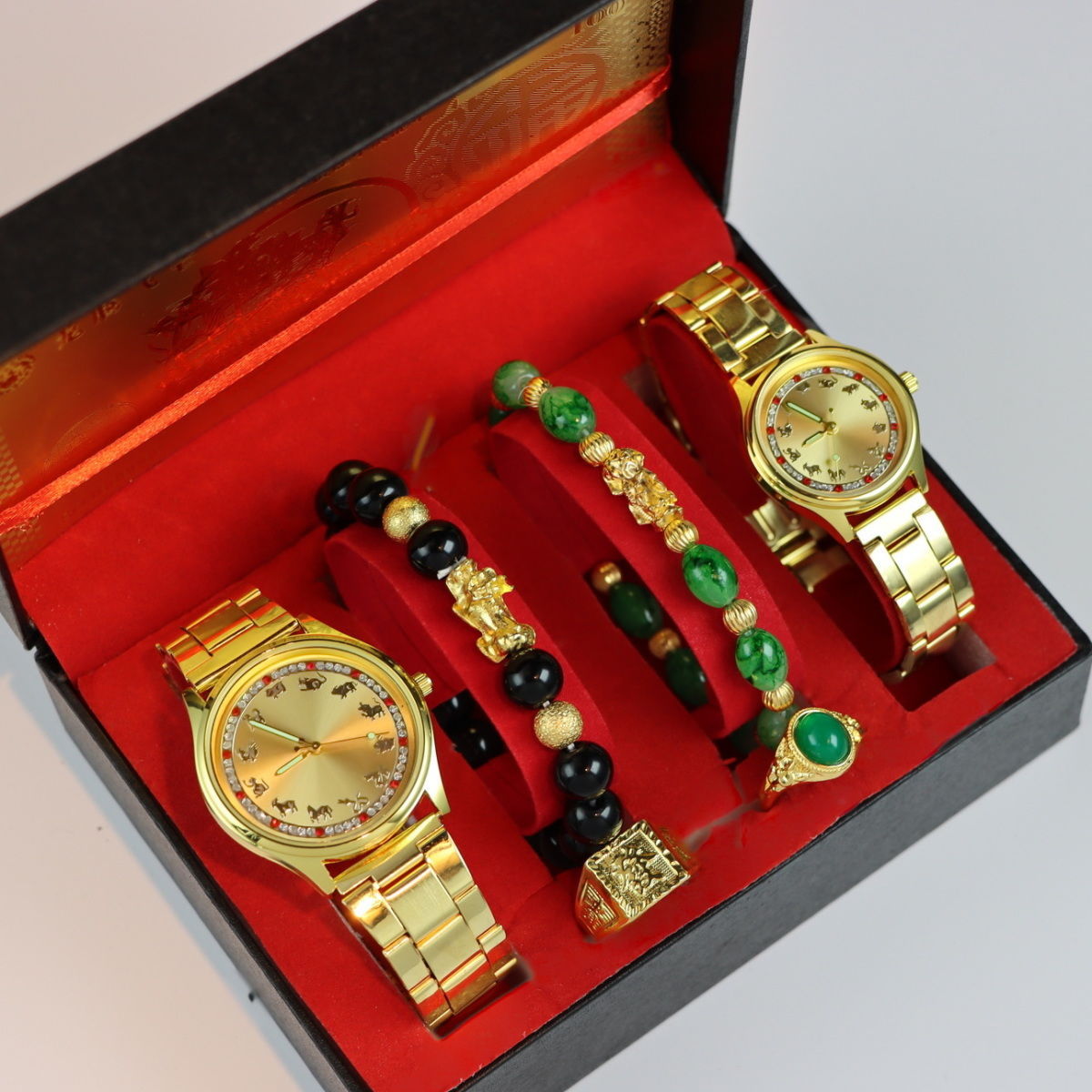 • 男女手表+手串2+戒指2+金钞+礼盒