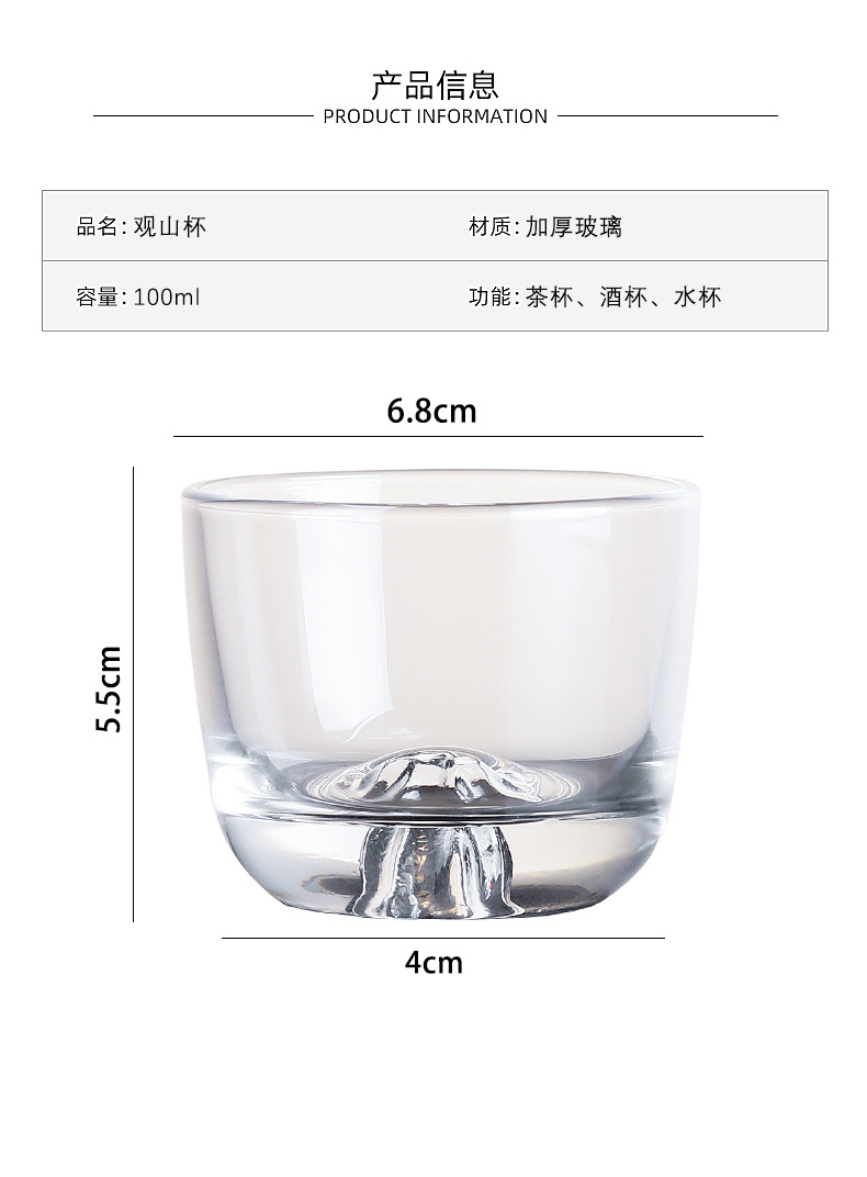 LA007批发定制品茶观山主人杯家用茶杯中式加厚玻璃杯酒杯待客简约茶杯