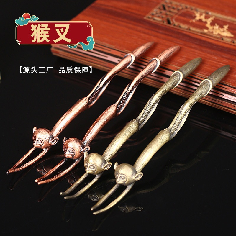 LA755可发样/茶具铜铁壶叉纯壶夹银壶盖叉日本铸铁壶配件茶道摆件合金猴壶叉