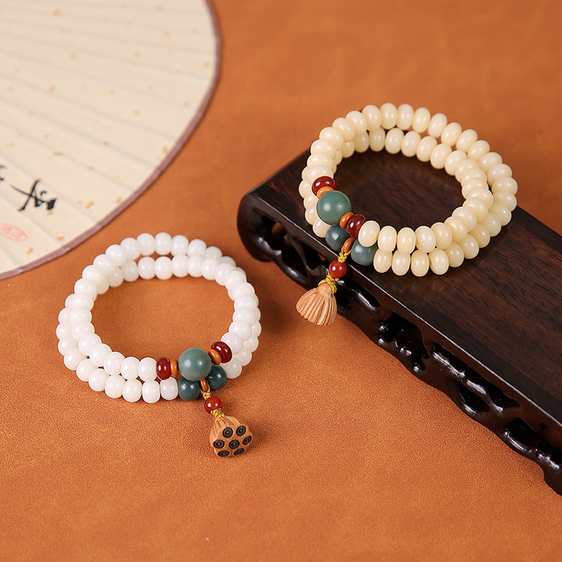 LA756可发样/奶油黄玉化菩提根手串男女款佛珠文玩菩提算盘珠双圈菩提手持莲蓬