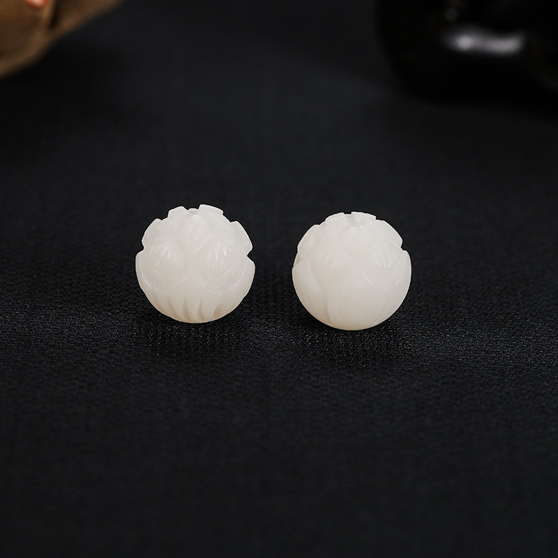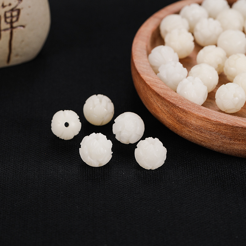 LA756可发样/手串diy配件白菩提散珠雕刻莲花 白玉菩提根苹果圆莲花配饰批发