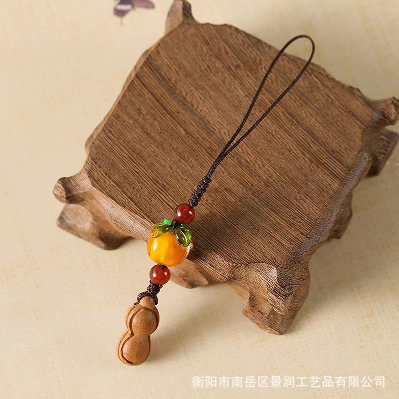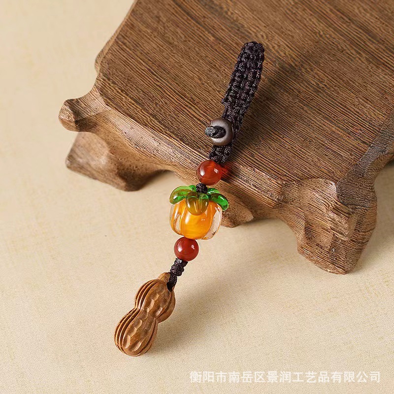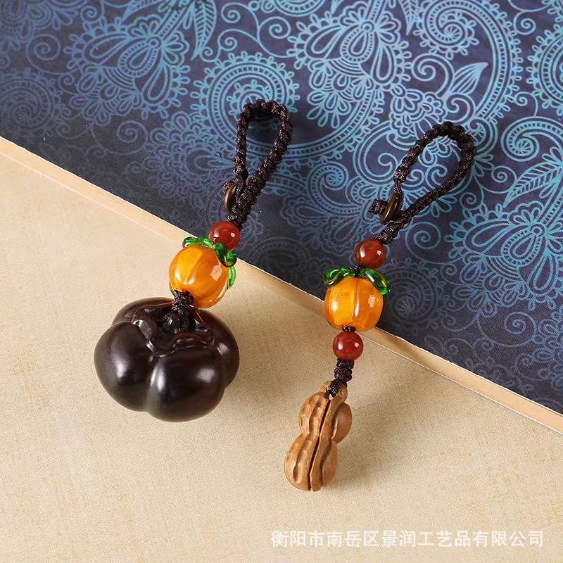 LA756可发样/直播货源好事发生挂件汽车钥匙扣檀木柿子事事如意桃木花生包包挂