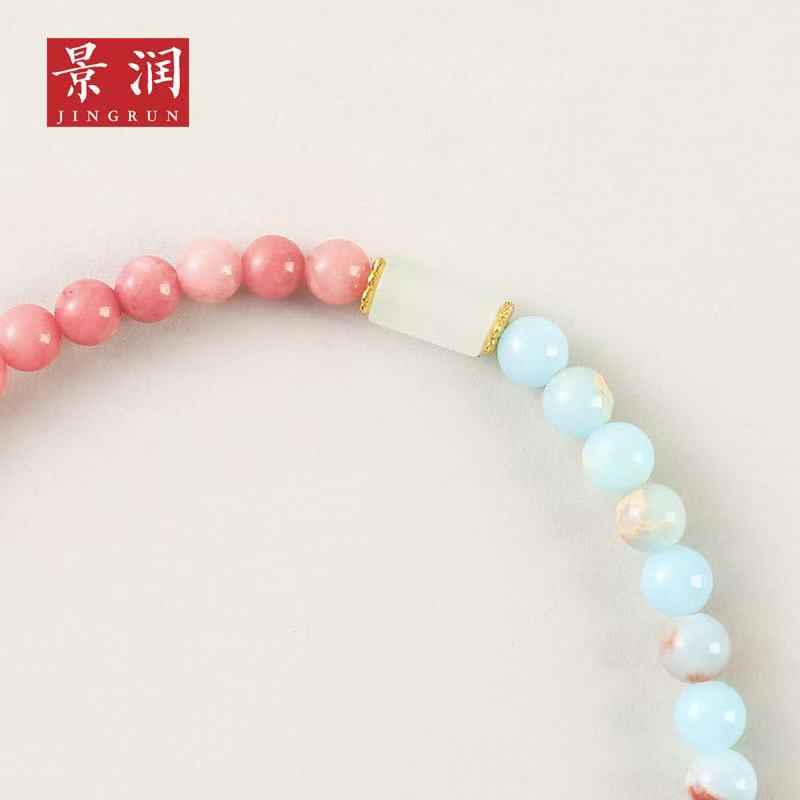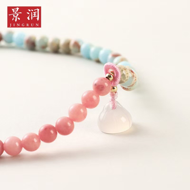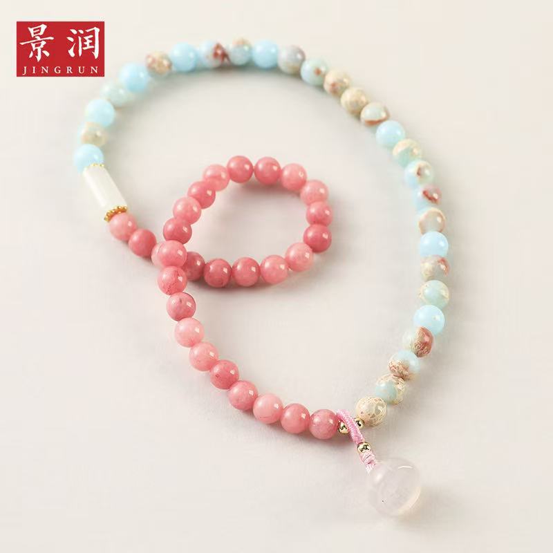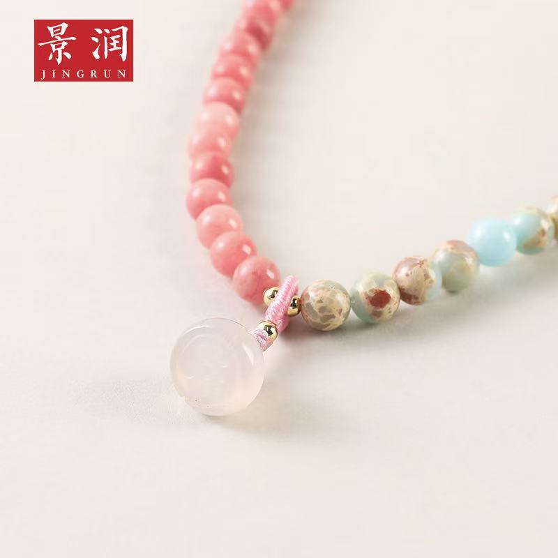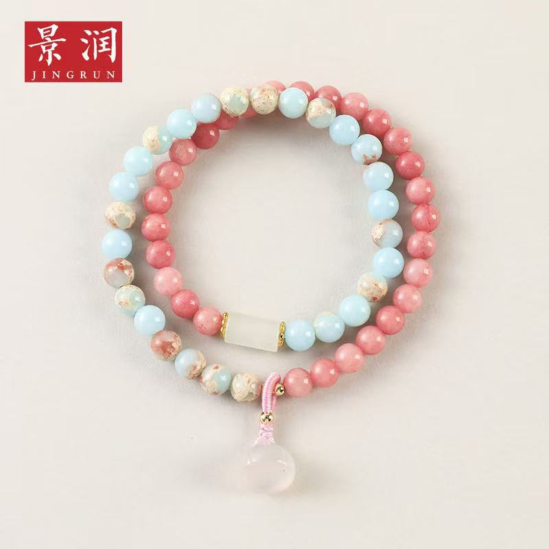 LA756可发样/小众设计天然蔷薇石红纹石手链拼寿山石粉晶莲蓬高级感女双圈手串