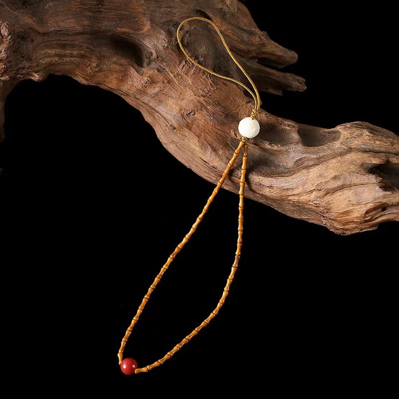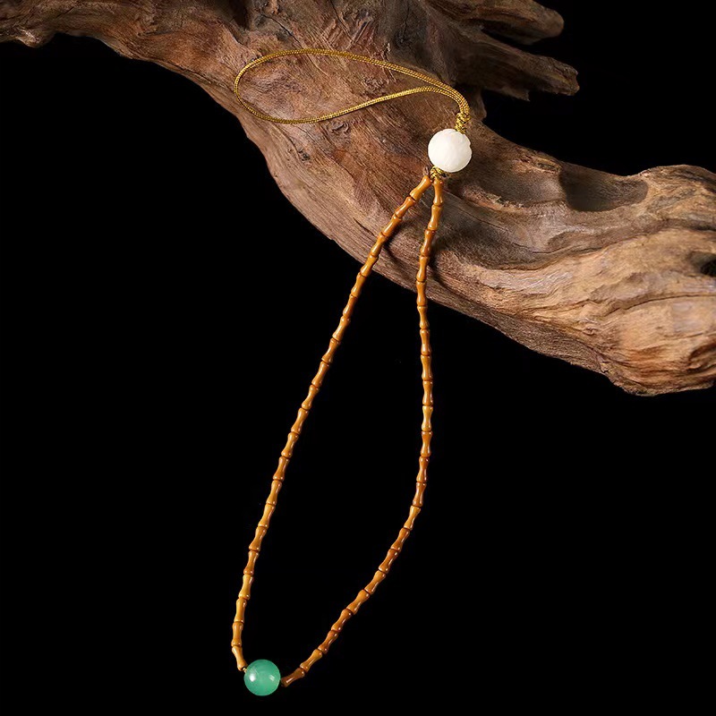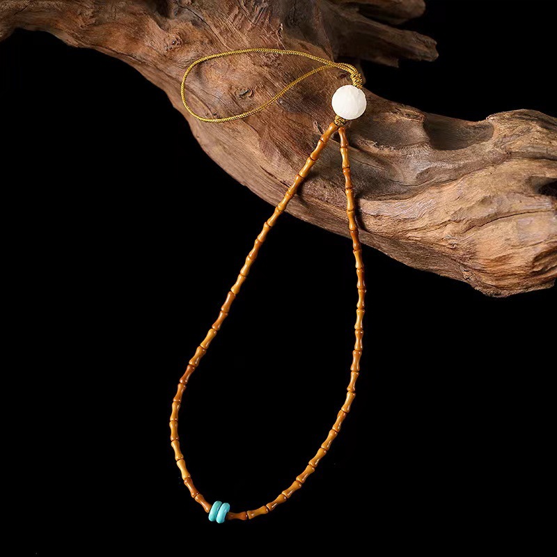 LA756可发样/创意古风橄榄核竹节手机链可拆卸挂绳女款短手腕文艺饰品简约挂脖