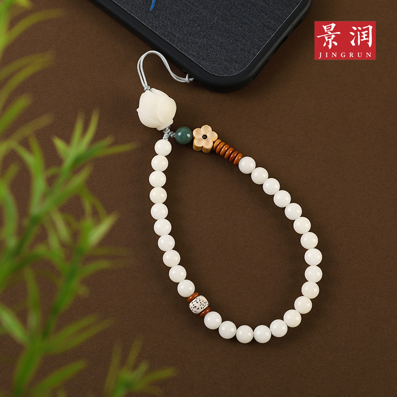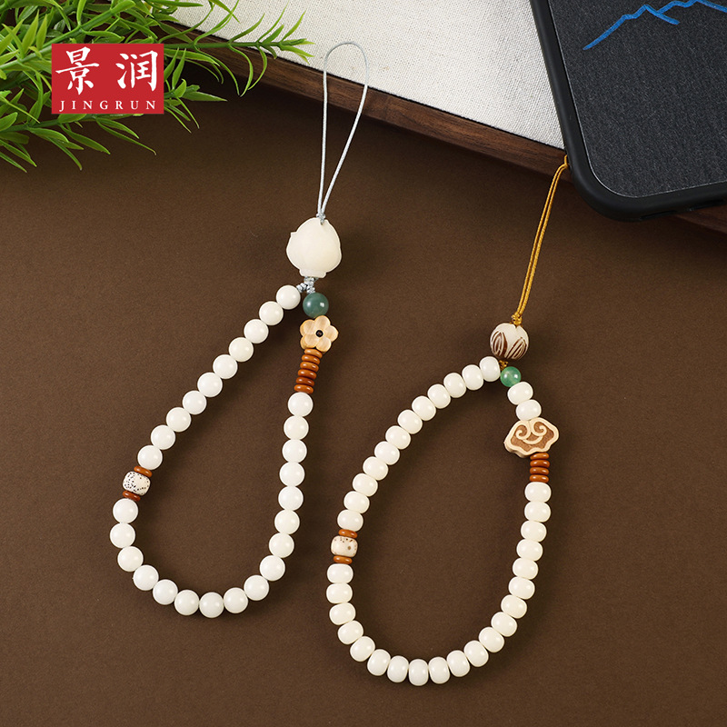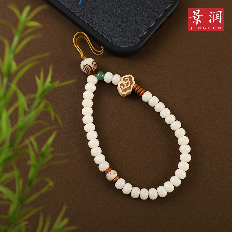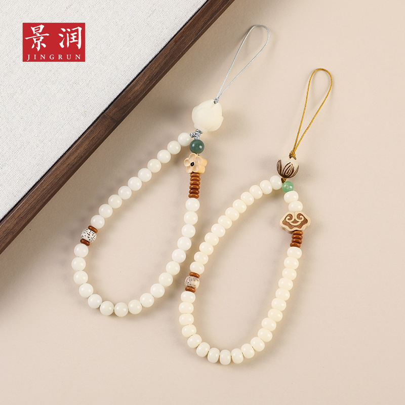LA756可发样/【荷钱】艺生艺白玉菩提根白玉菩提根手机挂绳女短款手腕挂绳挂件