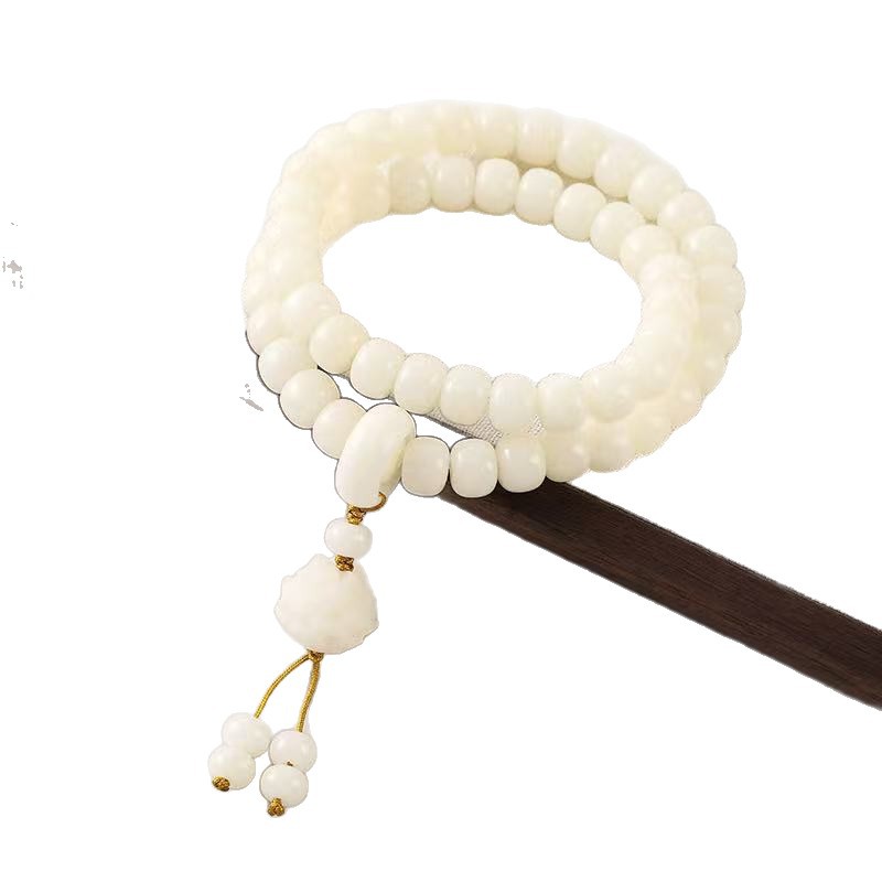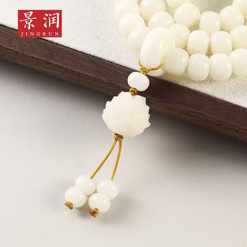 LA756可发样/天然白玉菩提手串菩提根手串双圈莲花挂绳流苏配饰配件菩提根原籽