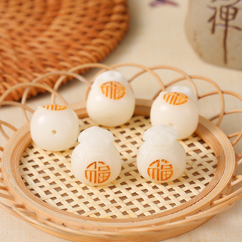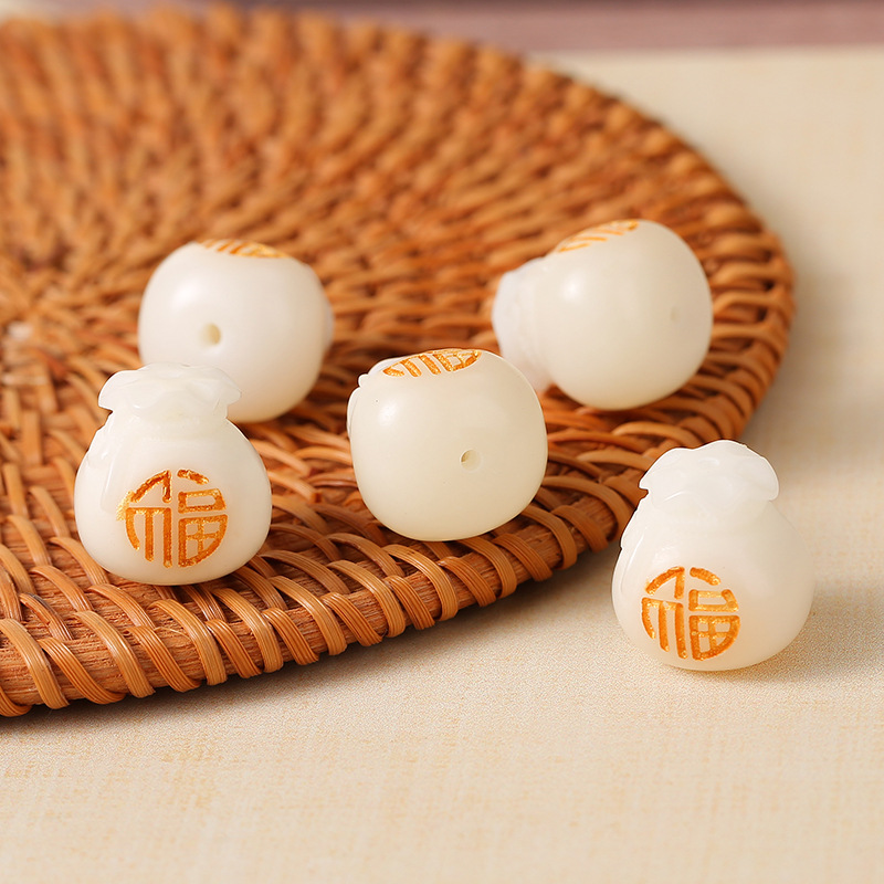 LA756可发样/白玉菩提雕刻福袋散珠菩提根雕刻钱袋菩提子手链文玩佛珠配饰批发