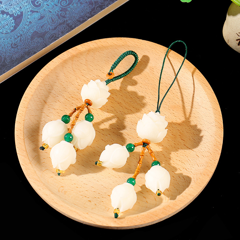 LA756可发样/菩提玉兰花汽车钥匙扣莲花挂件唯美清新手机链包包挂创意挂坠