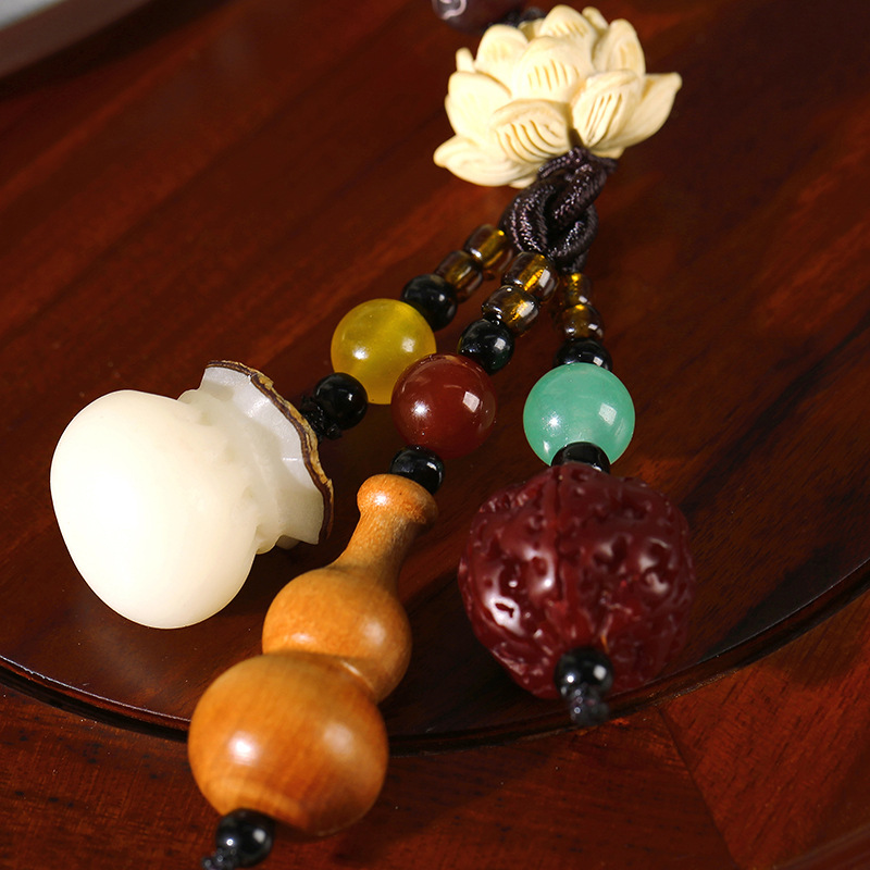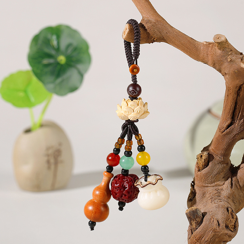 LA756可发样/桃木葫芦钥匙扣汽车挂件菩提福袋朱砂情侣男女可爱精致书包包挂饰