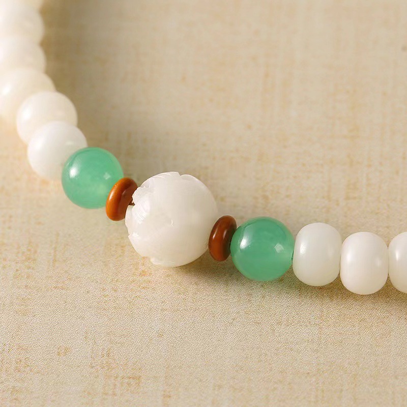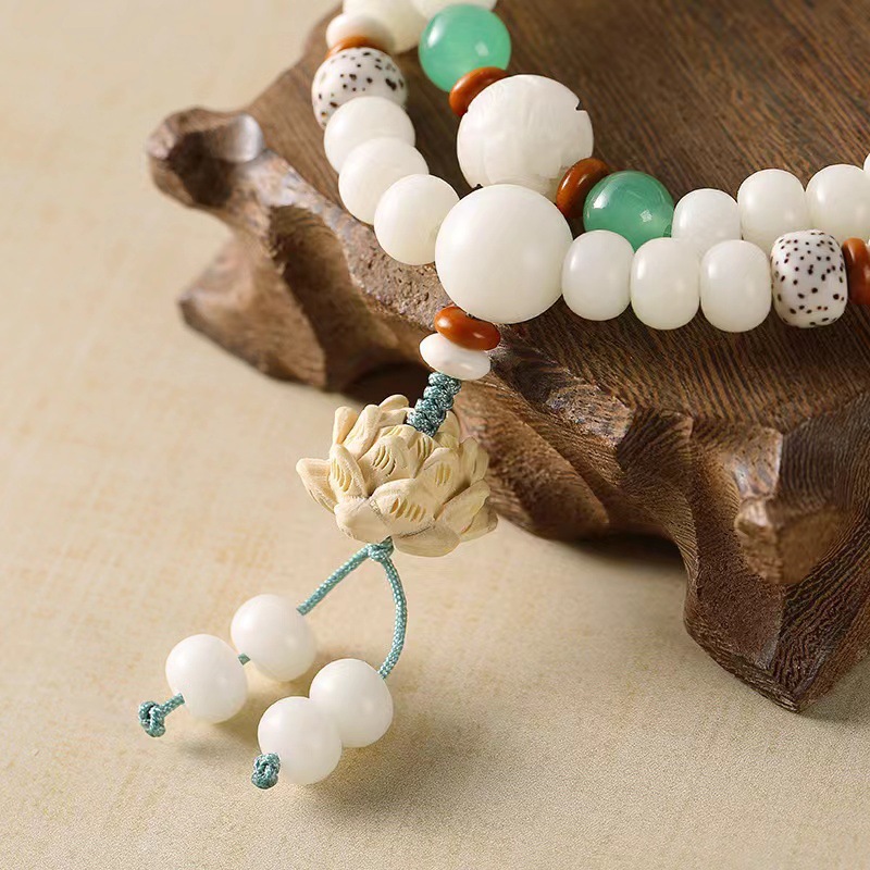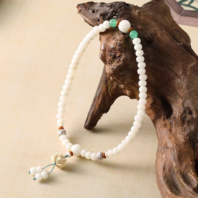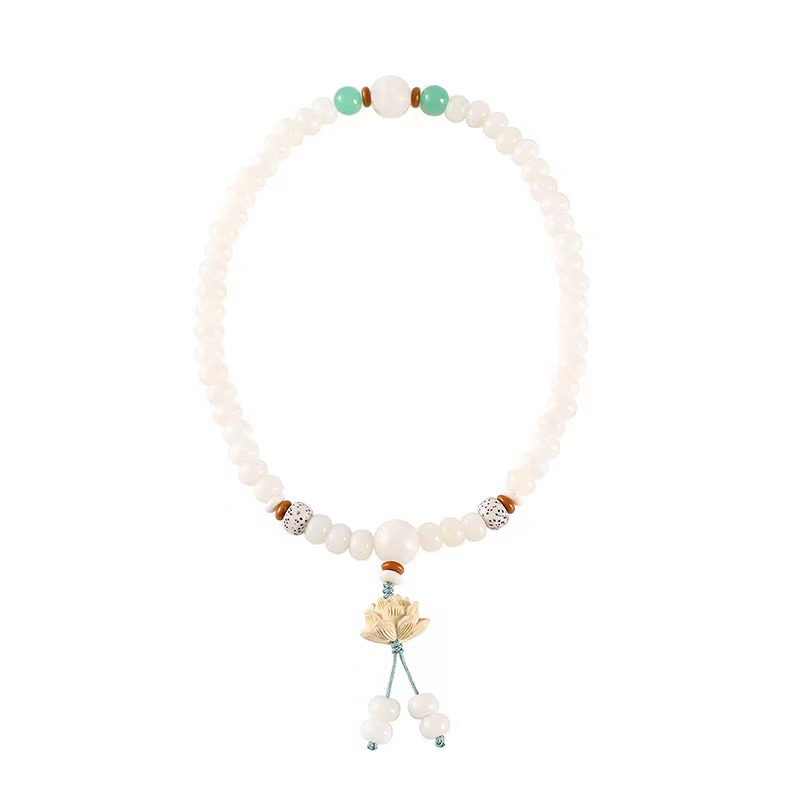 LA756可发样/原生态白玉菩提根国潮复古女小众手上文玩念珠双圈莲花坠好运手链