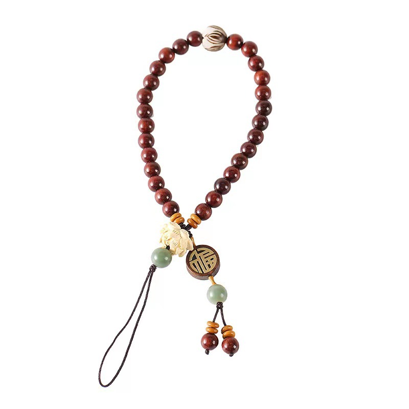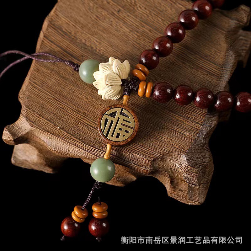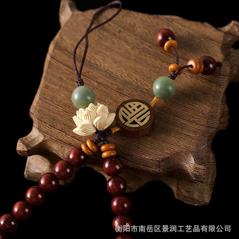 LA756可发样/直播紫檀手机链挂绳花梨木长款莲花古风手腕u盘挂饰手机壳男女挂