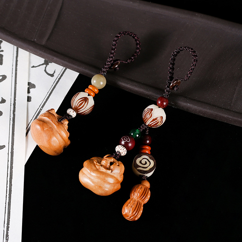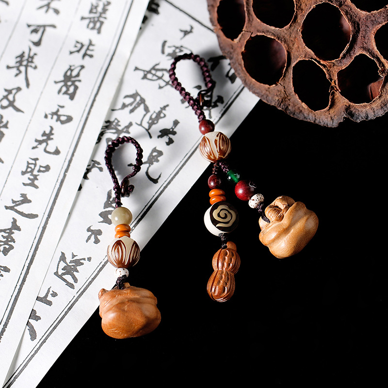 LA756可发样/好事花生钥匙扣 原生态桃木手机链挂链情侣小众平价礼物