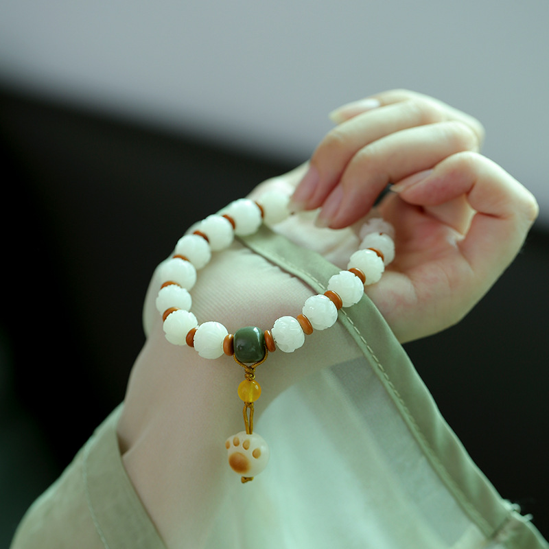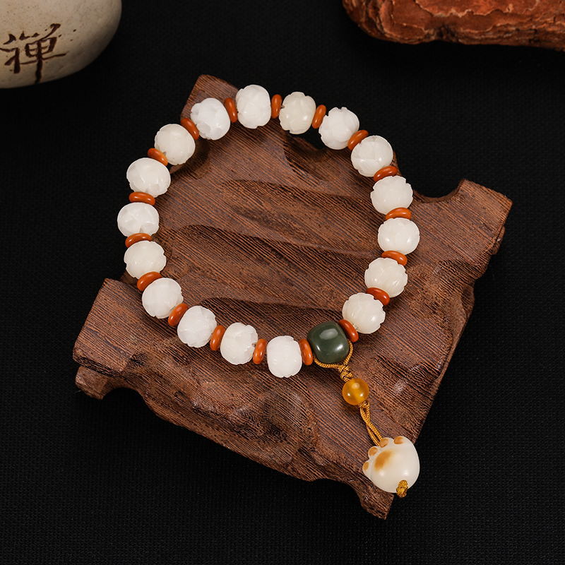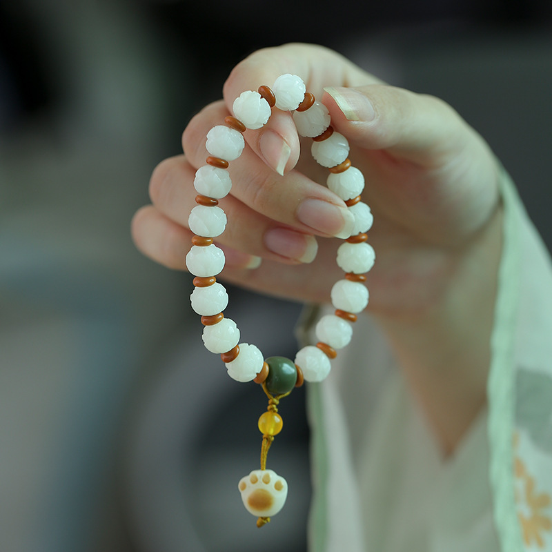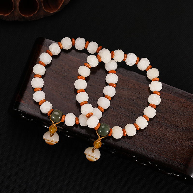 LA756可发样/炭烧猫爪莲花手串白玉菩提根手串桃木莲蓬手链文玩男女菩提子手链
