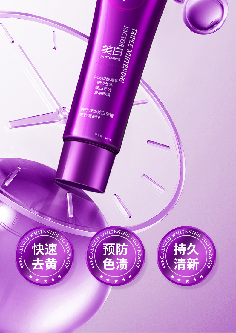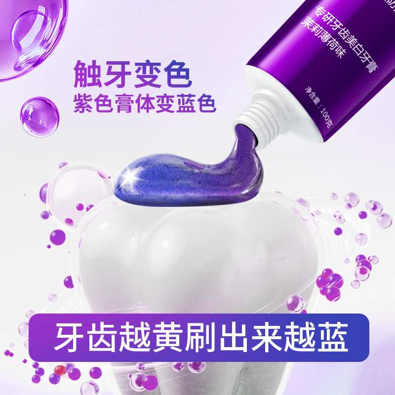 LA008可发样色修专研美白紫色变蓝紫光牙膏去渍减轻口臭清新口气亮白热销批发