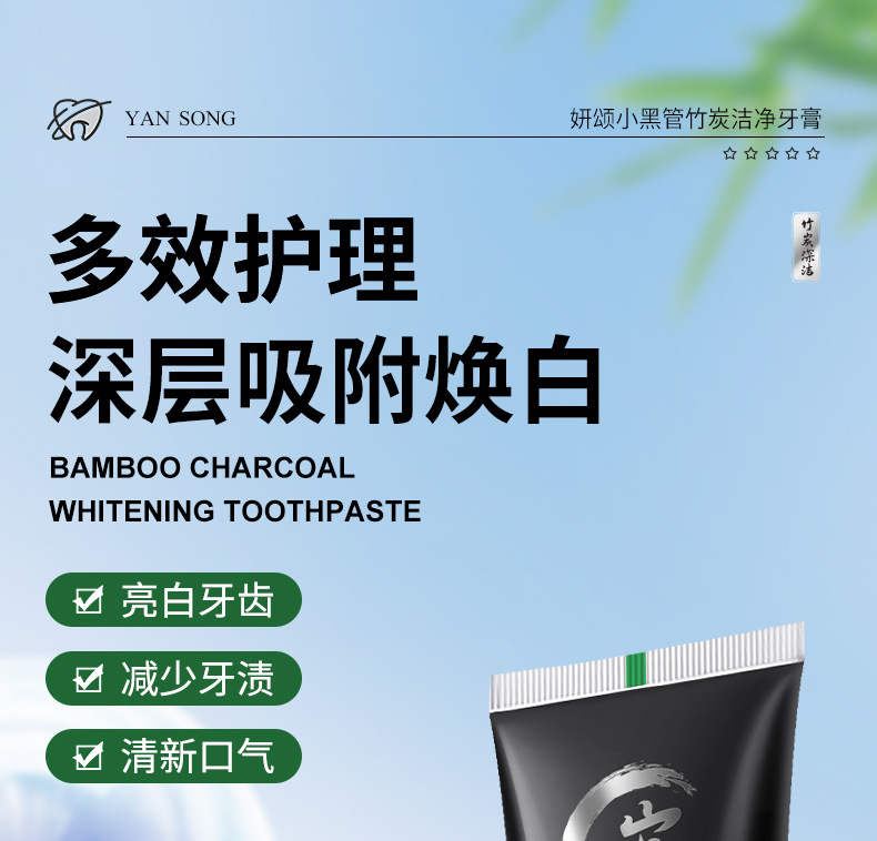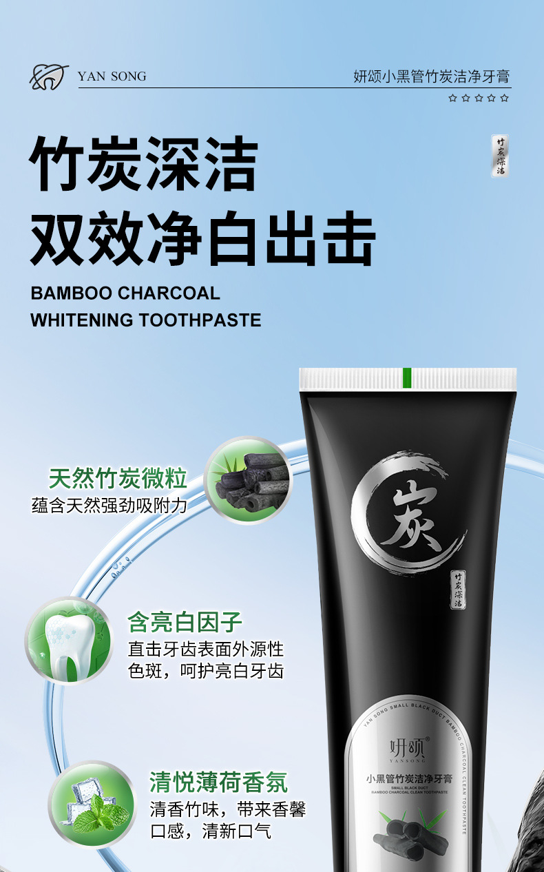 LA008可发样批发小黑管竹炭洁白牙膏小白口臭去黄去牙渍亮白清新口气牙膏正品