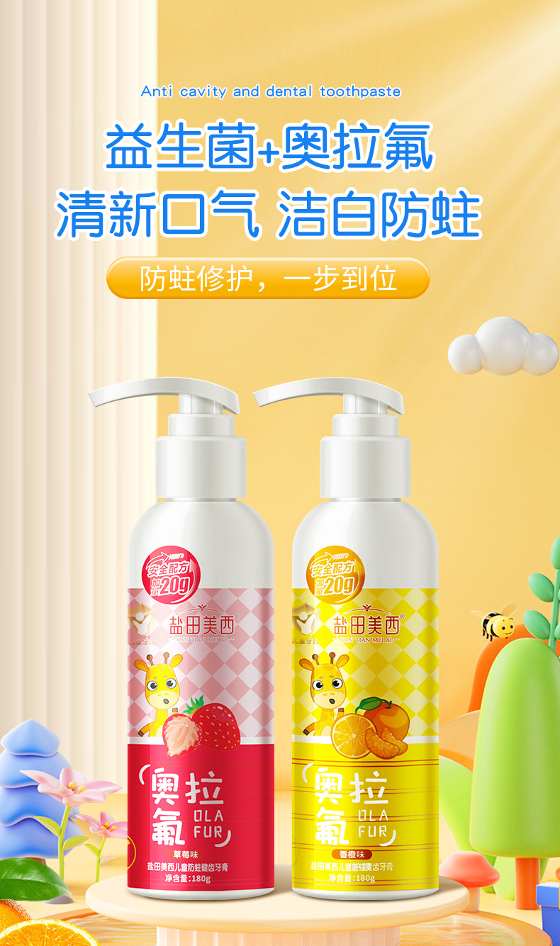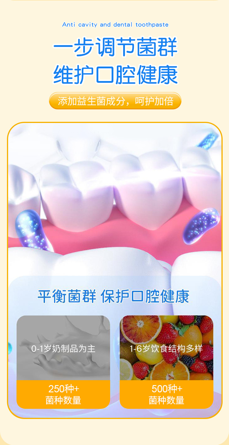 LA008可发样益生菌元3-6-12岁奥拉氟儿童牙膏宝宝婴儿换牙期防蛀正品清新口气