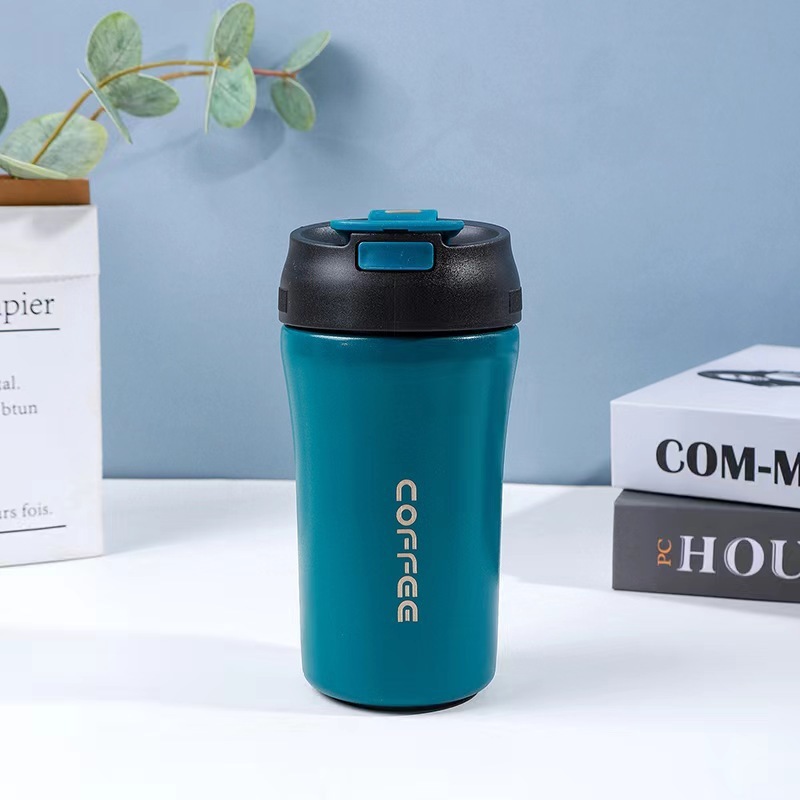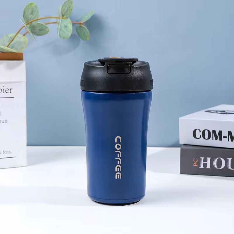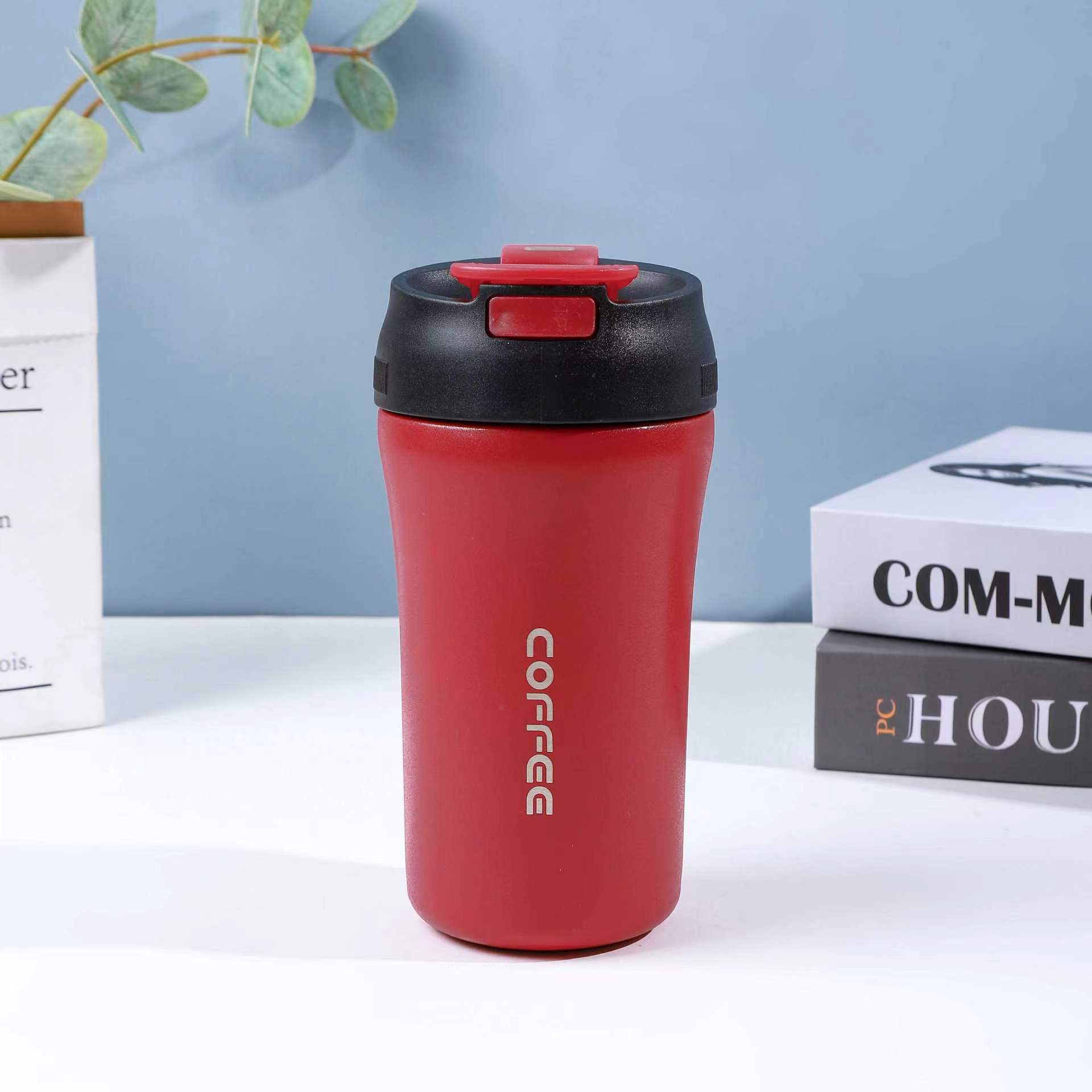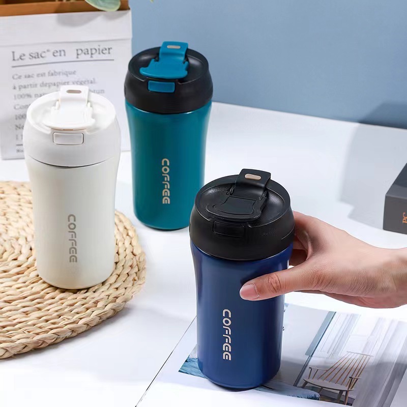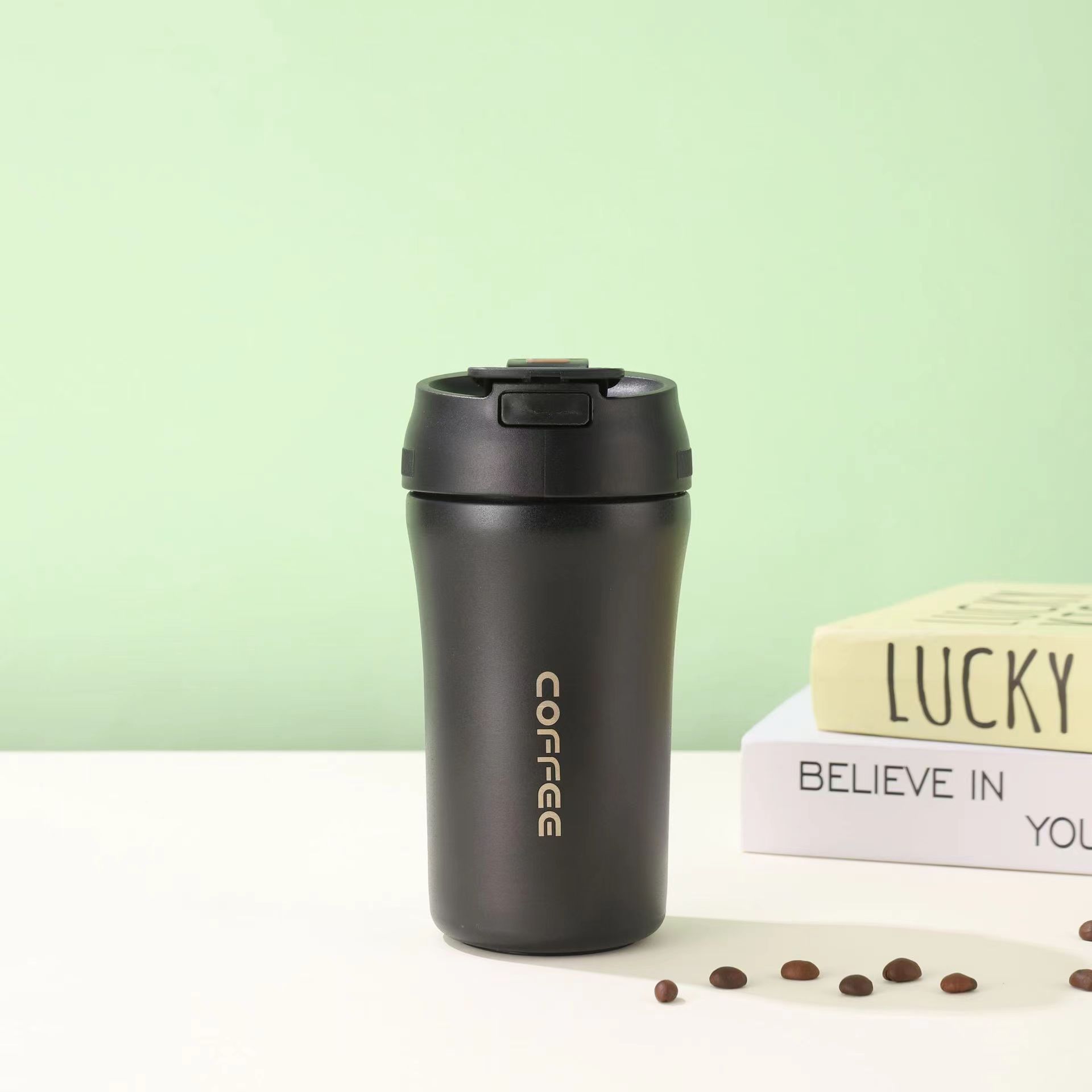 LA742可发样/新款304不锈钢咖啡杯创意翻盖弹跳双饮吸管杯真空双层车载杯批发