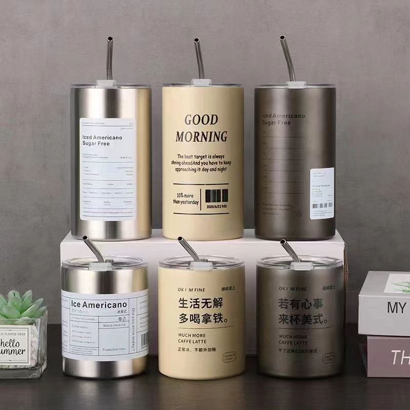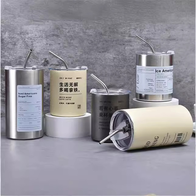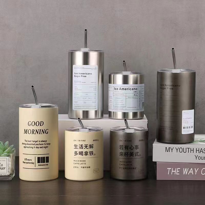 LA742可发样/跨境咖啡杯冰美式不锈钢30真空双层带吸管杯便携拿铁保温杯