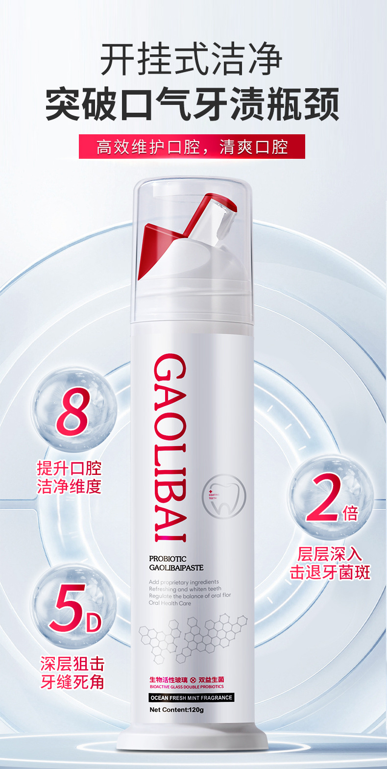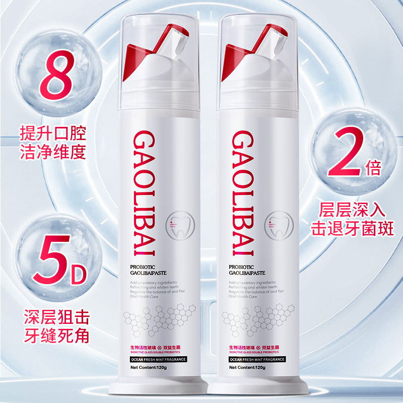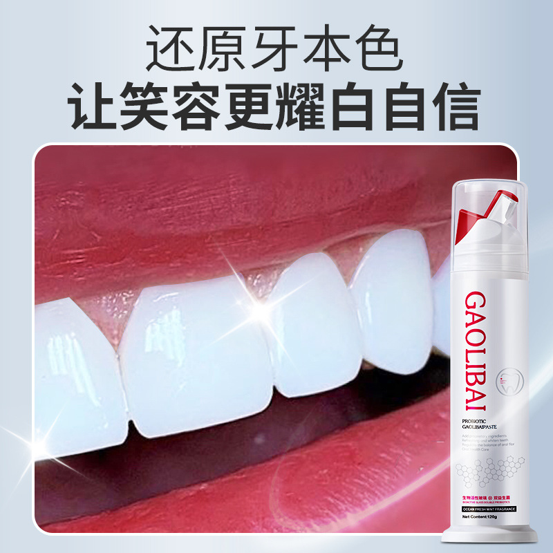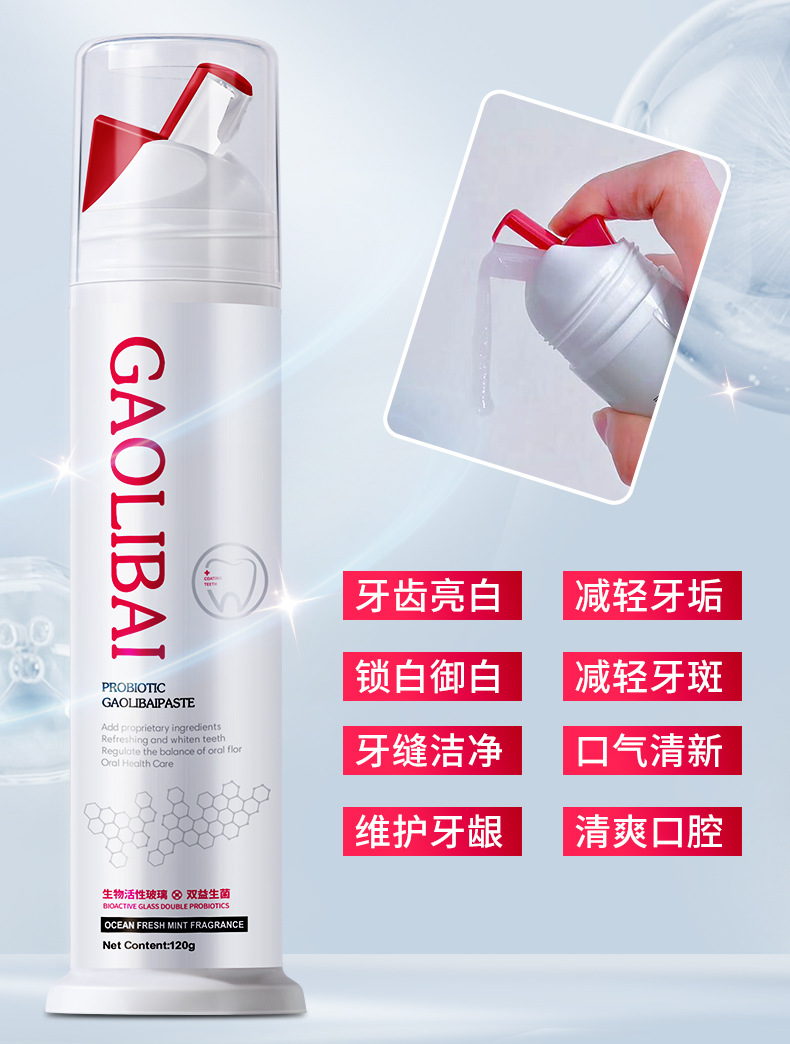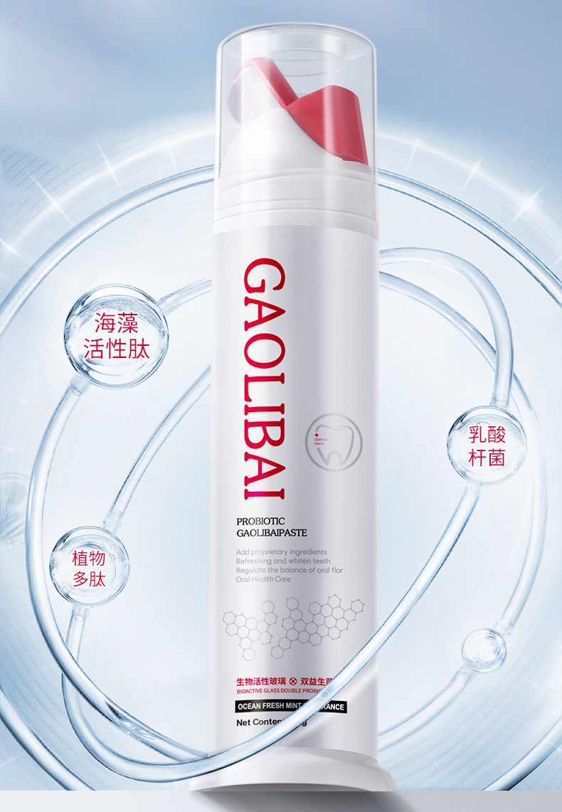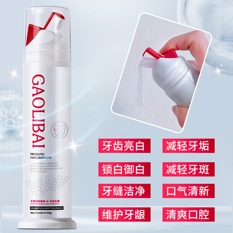 LA008可发样【外贸】批发益生菌活性肽牙膏清新口气亮白去牙渍真空按压式牙膏