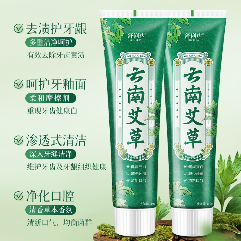 LA008可发样批发现货云南中草药艾草牙膏亮白口臭清新口气草本薄荷牙膏舒俐达