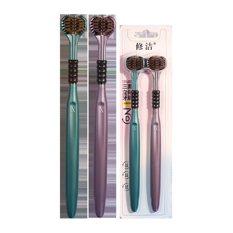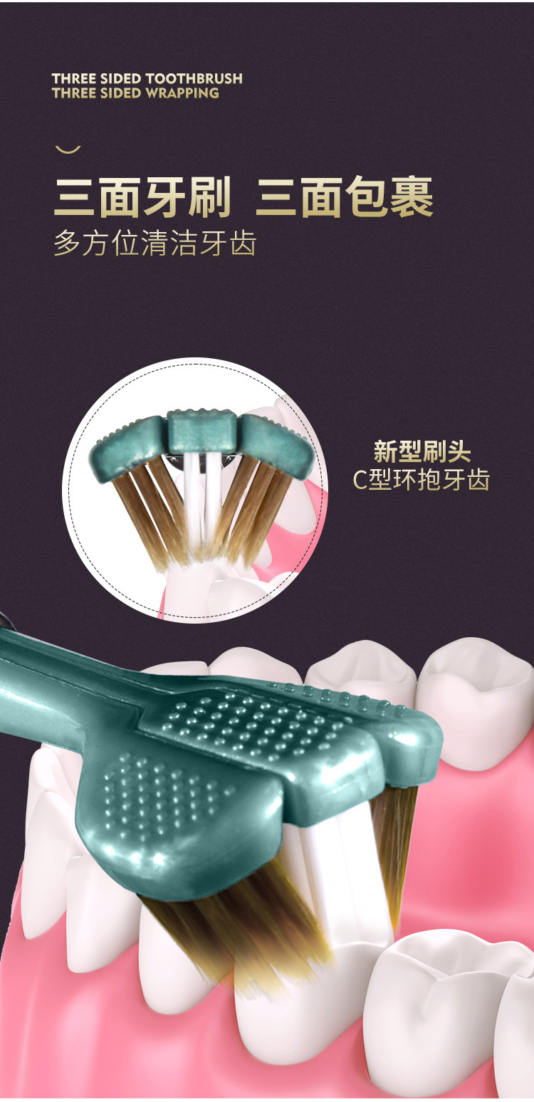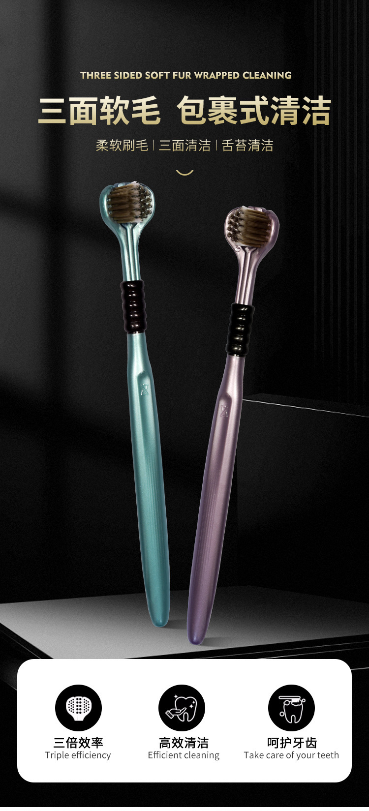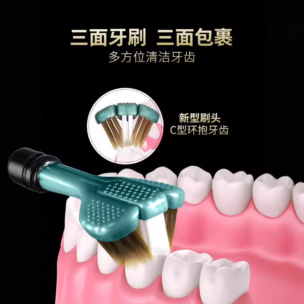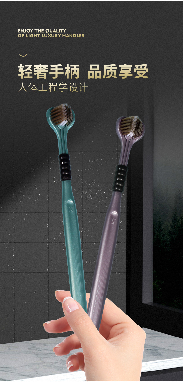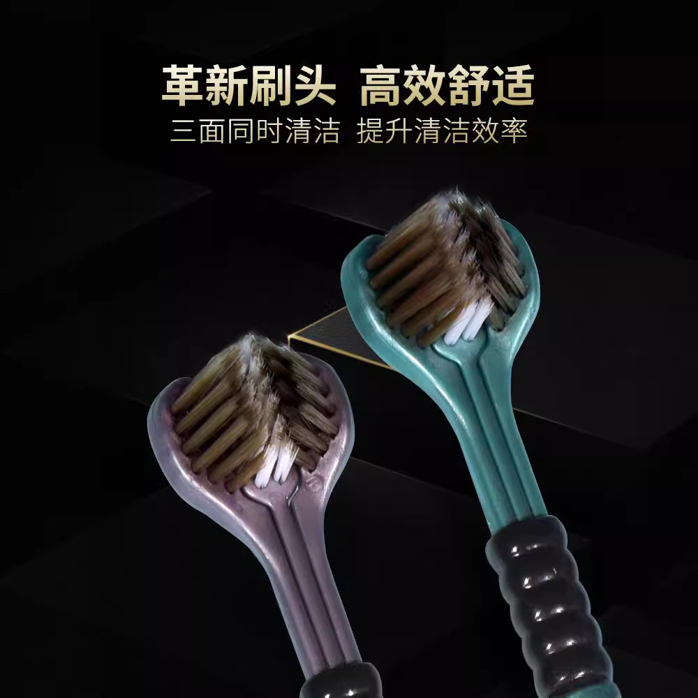 LA008可发样批发三面高级牙刷软毛家用宽头护龈三头成人牙刷家用工厂清洁牙齿