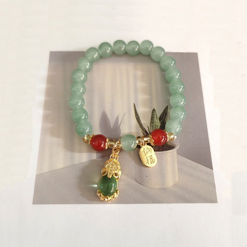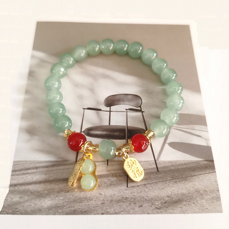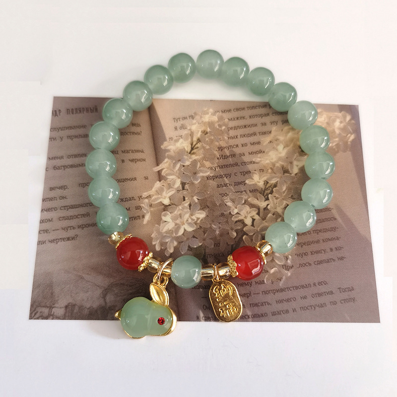LA728可发样/多多新款东陵玉珠平安扣手链招财纳福玉兔手链女闺蜜清新甜美手串
