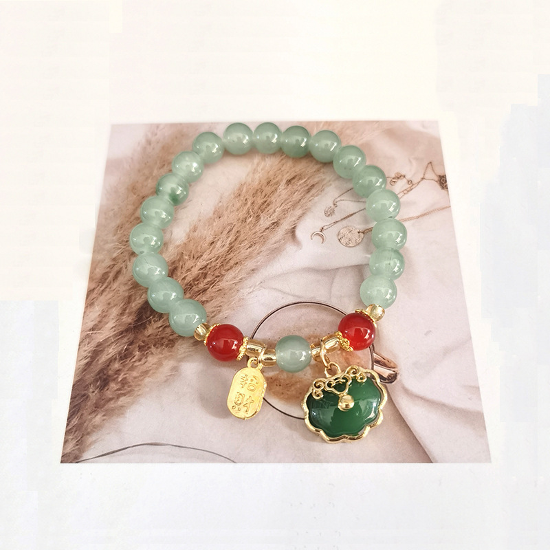 • S301 东陵玉珠招财纳福绿平安锁手链