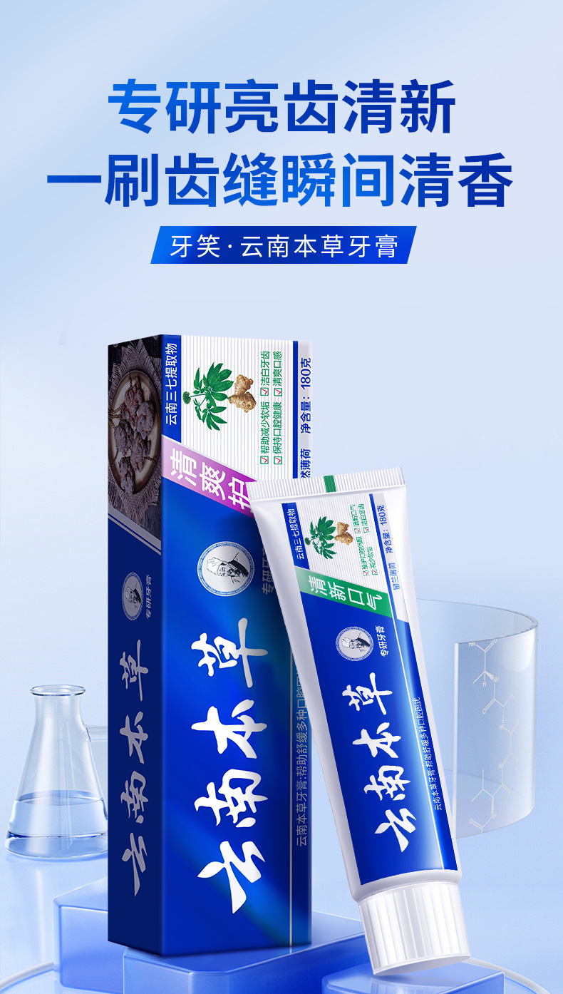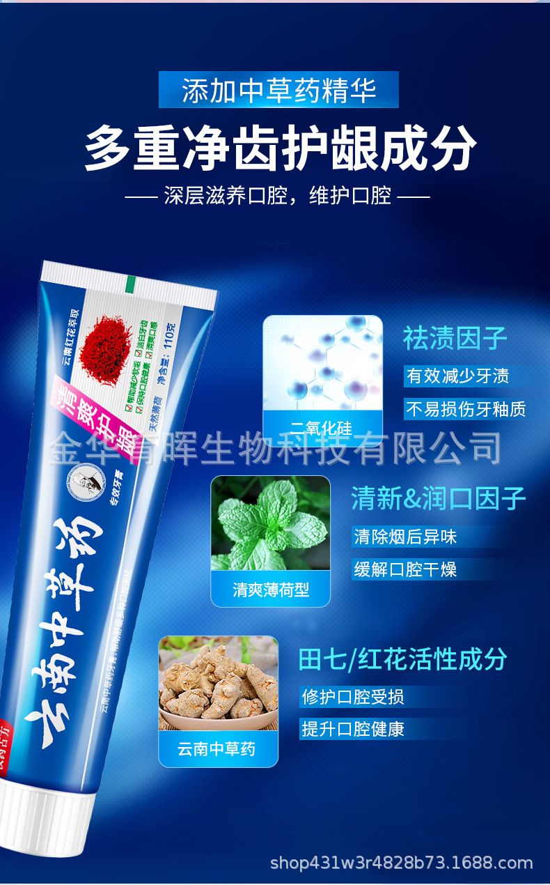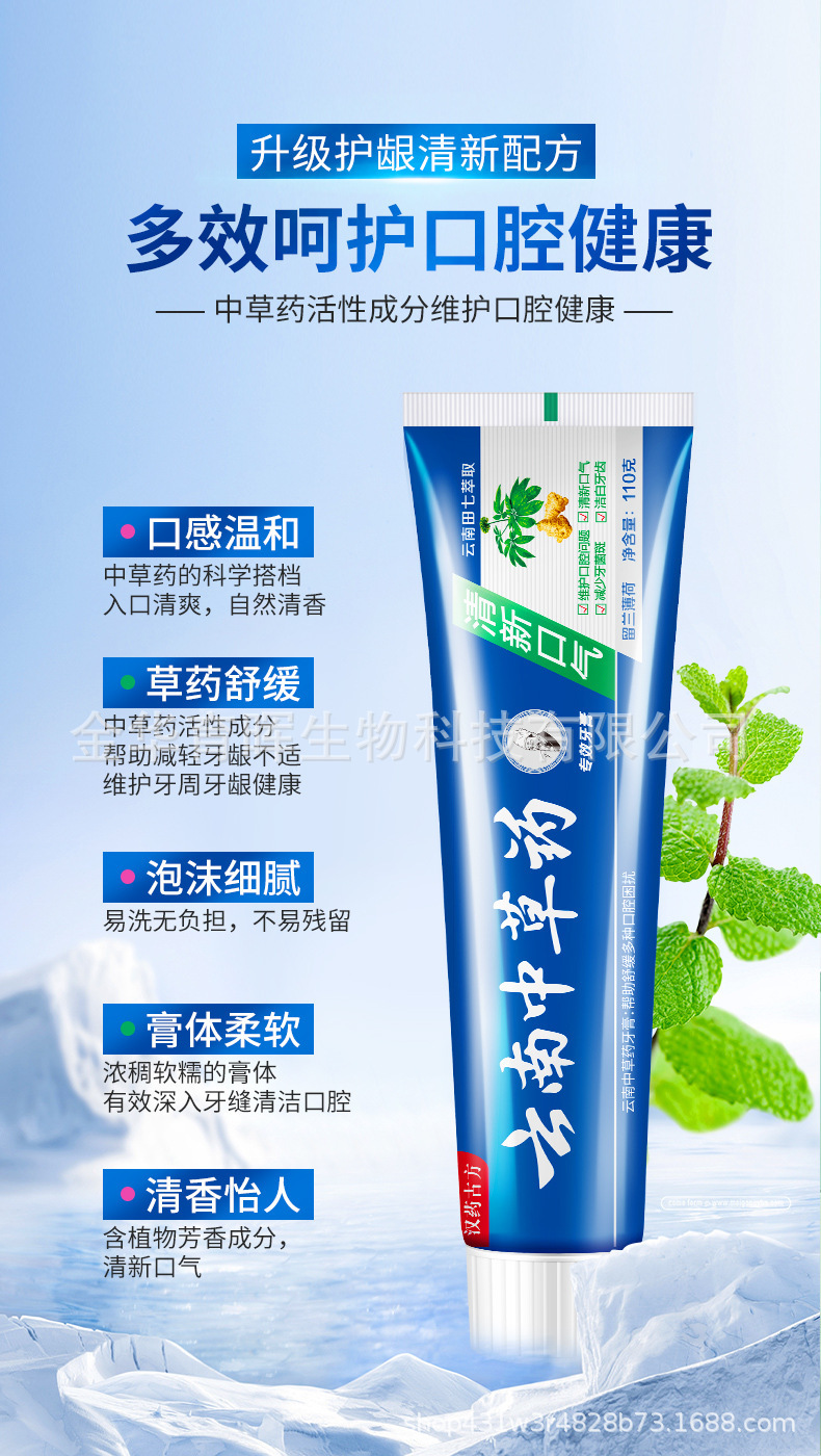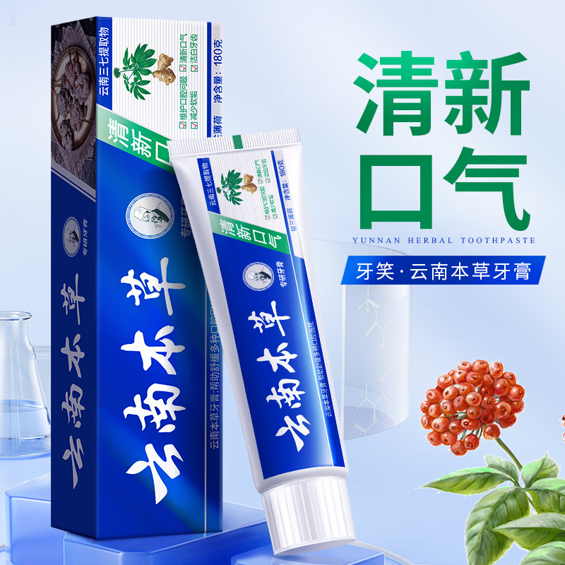LA008可发样批发云南中草药牙膏去牙渍口气清新留兰薄荷中药本草护龈牙膏厂家