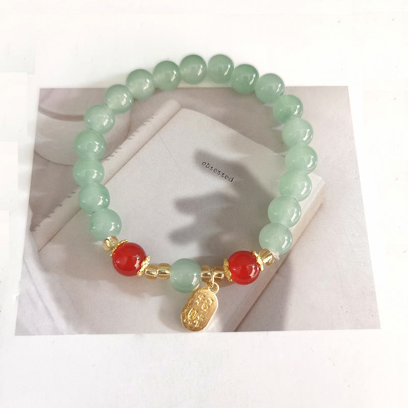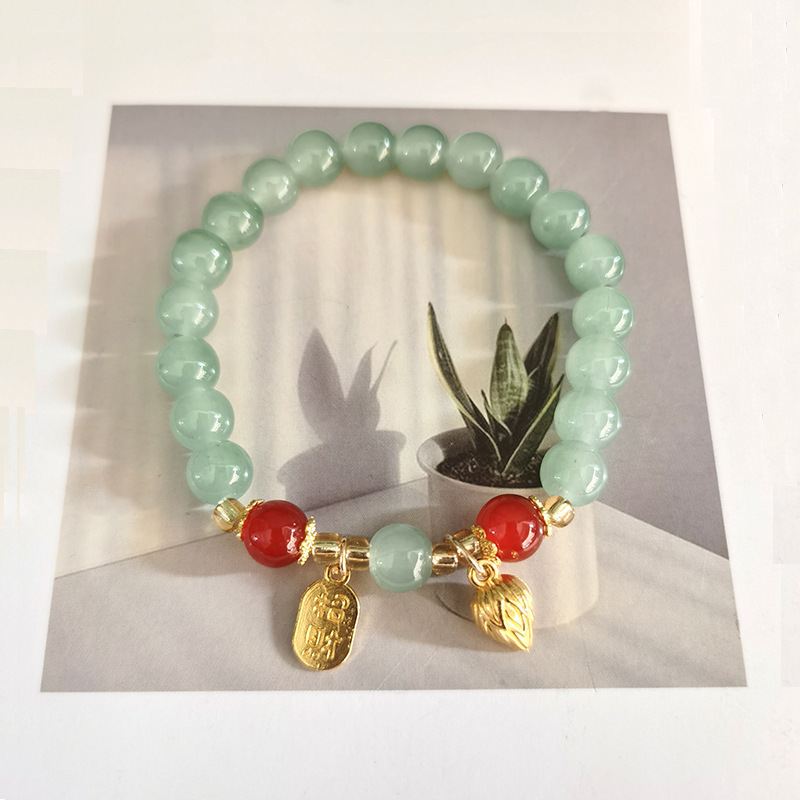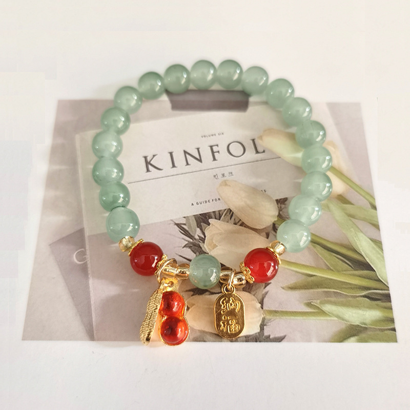 • S300 东陵玉珠招财纳福绿玉盘手链