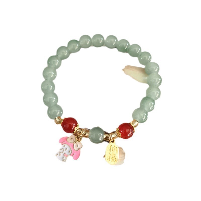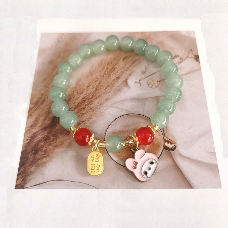 • S290 东陵玉珠招财纳福绿玉兔手链