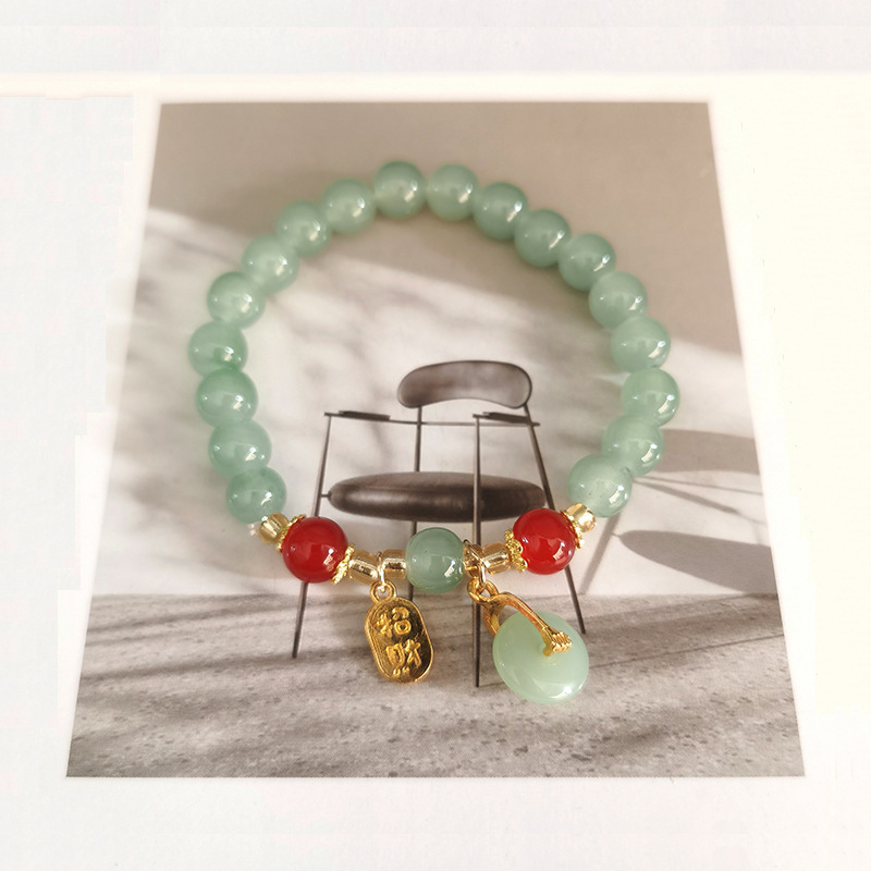 • S301 东陵玉珠招财纳福绿平安锁手链