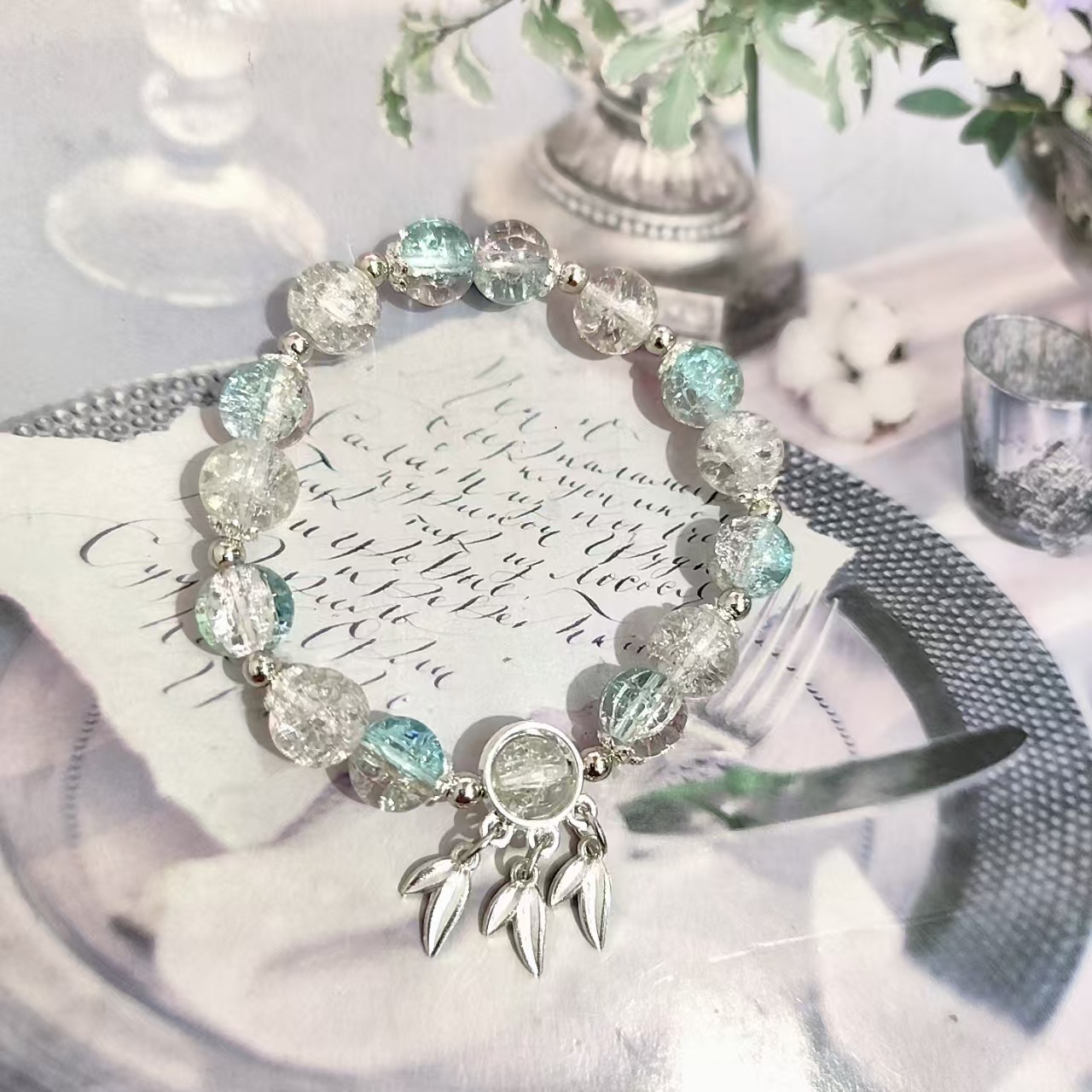 • S313 浅蓝琉璃竹叶手链