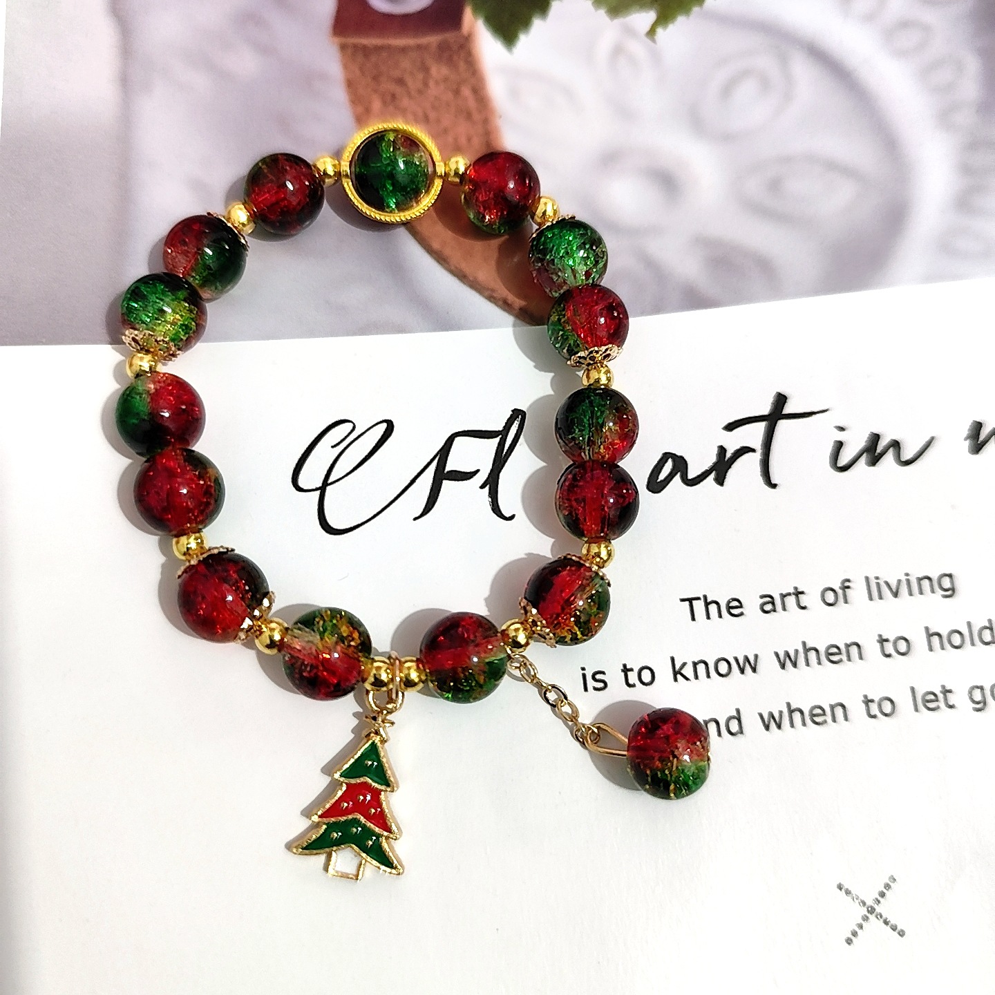LA728可发样/新款圣诞节琉璃手链女ins小众闺蜜手串冰裂碎花珠串珠文创链批发