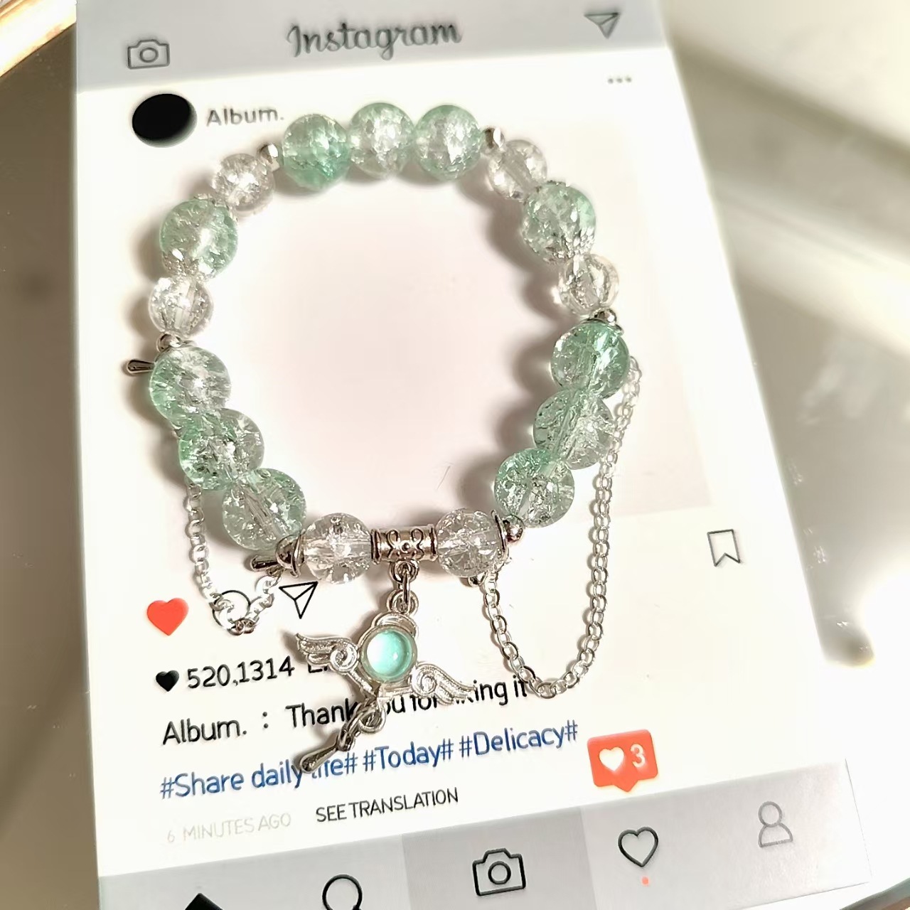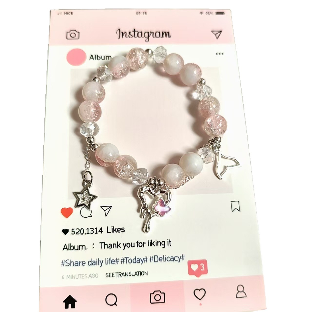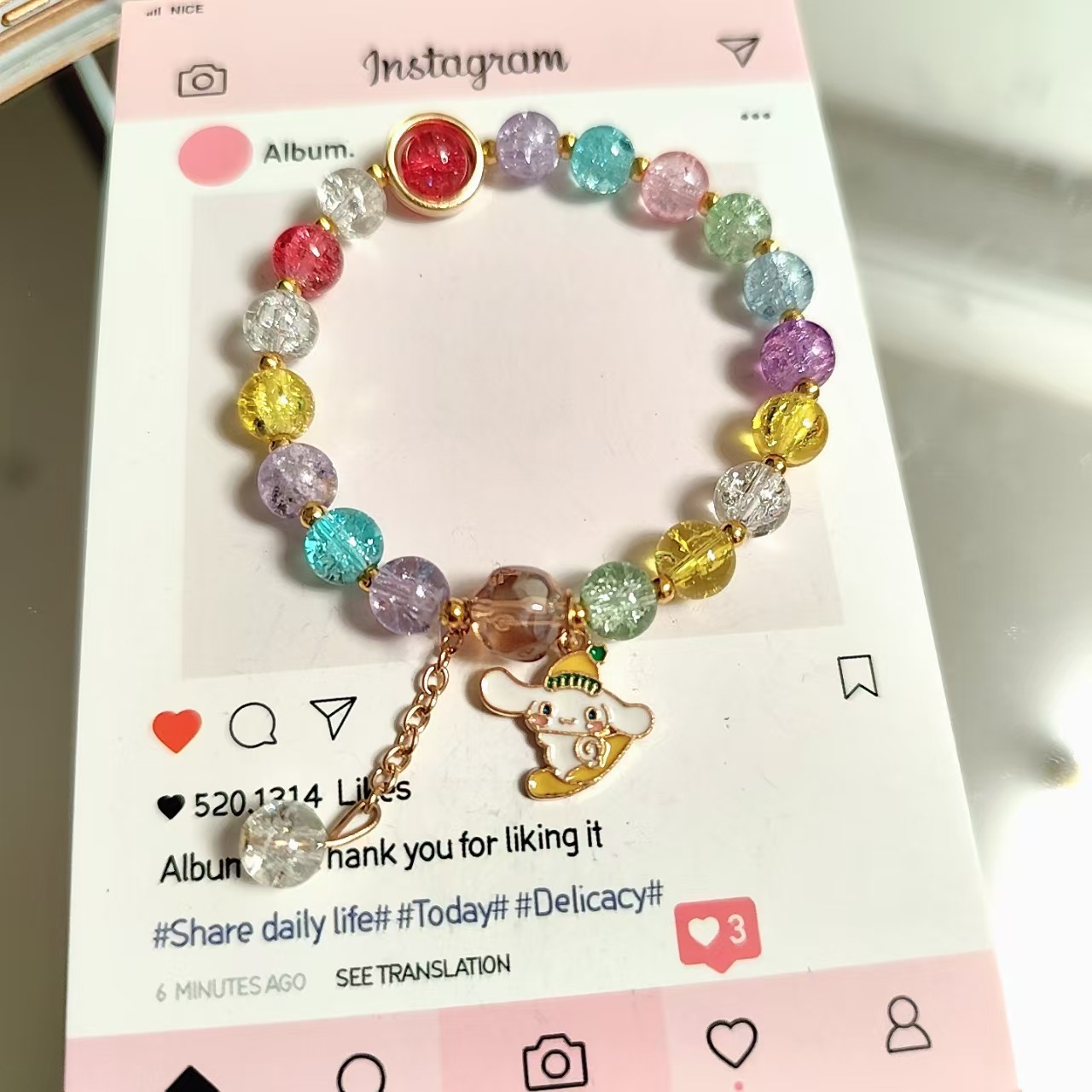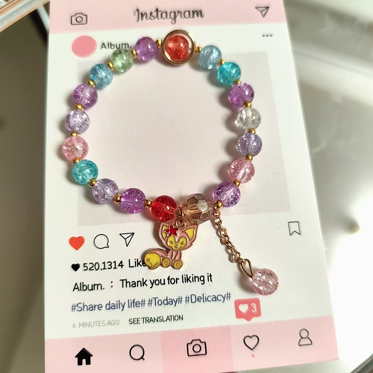 LA728可发样/新款融化爱心手链女森系小清新闺蜜彩色裂纹琉璃水晶手串摆摊批发
