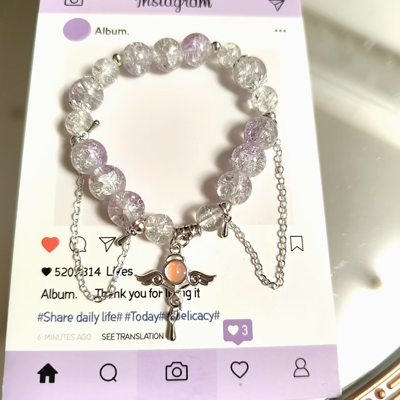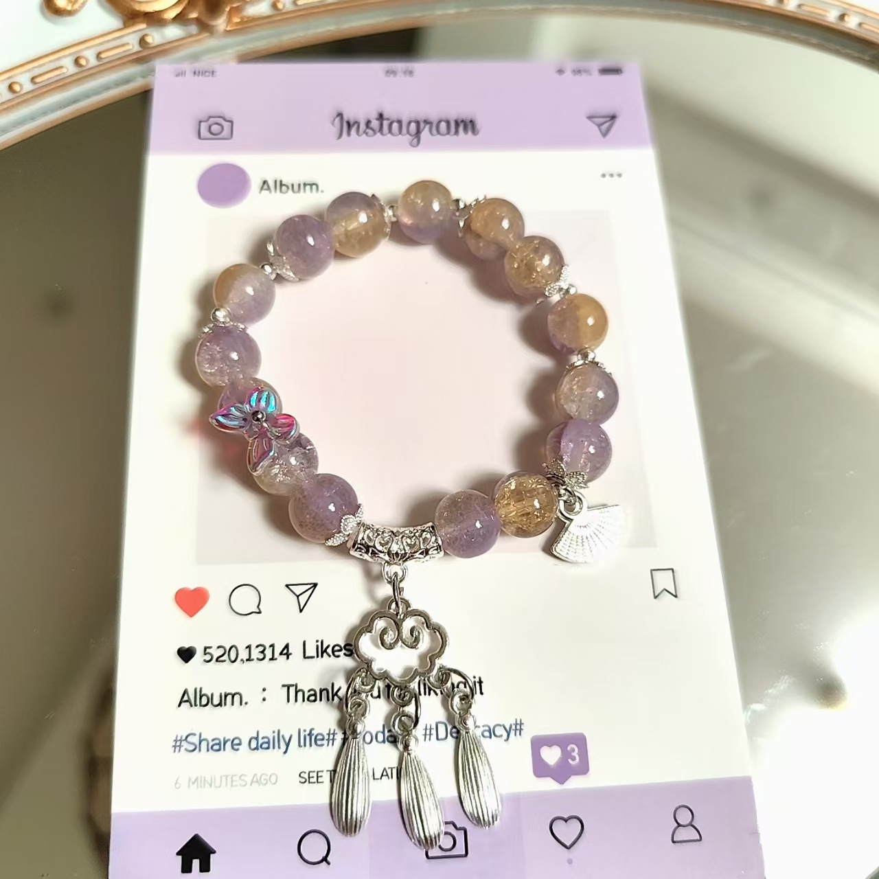 • S522 珍珠鱼尾AB彩水晶手链紫色