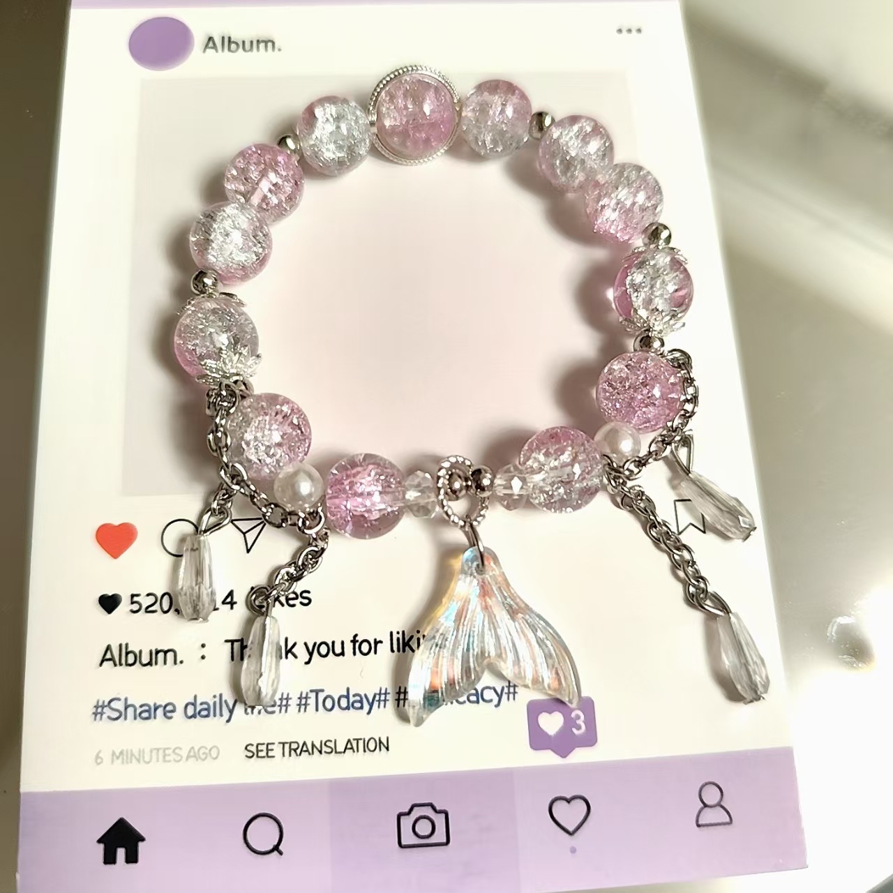 • S521 珍珠鱼尾AB彩水晶手链粉色