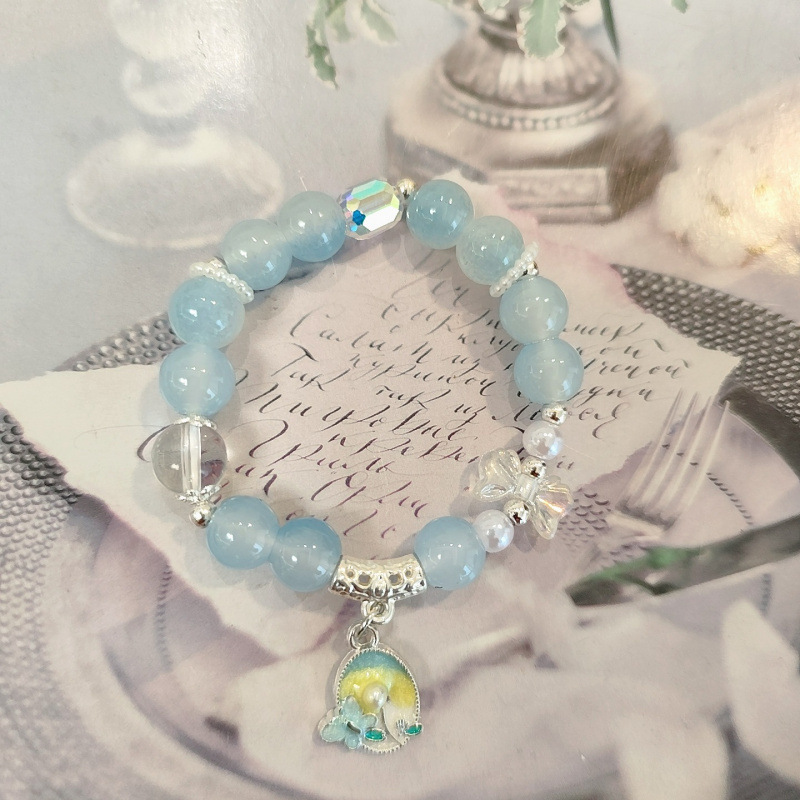 • S458 水晶AB彩蝴蝶结手链浅蓝色
