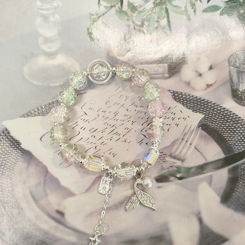 • S523 珍珠鱼尾AB彩水晶手链粉绿色
